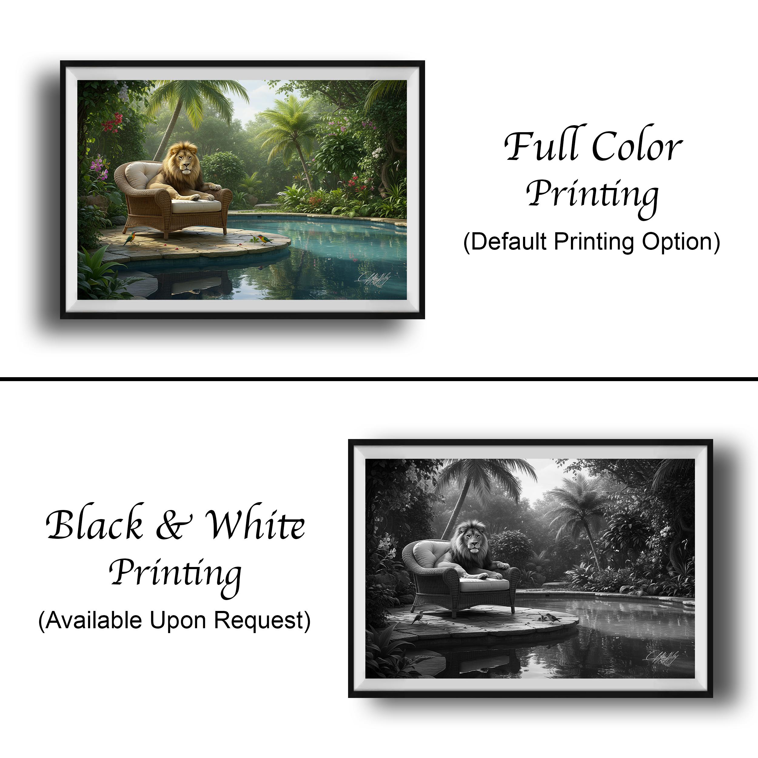 Step into a tranquil world where the vibrant green jungle forest and African wildlife art come together in perfect harmony. This artist signed print beautifully captures the majestic essence of a lion, making it an exquisite wildlife gift idea for those who appreciate nature’s serene elegance. Whether gracing nursery wall decor or enhancing your living room art, this unique jungle forest print invites a peaceful connection to the wild.