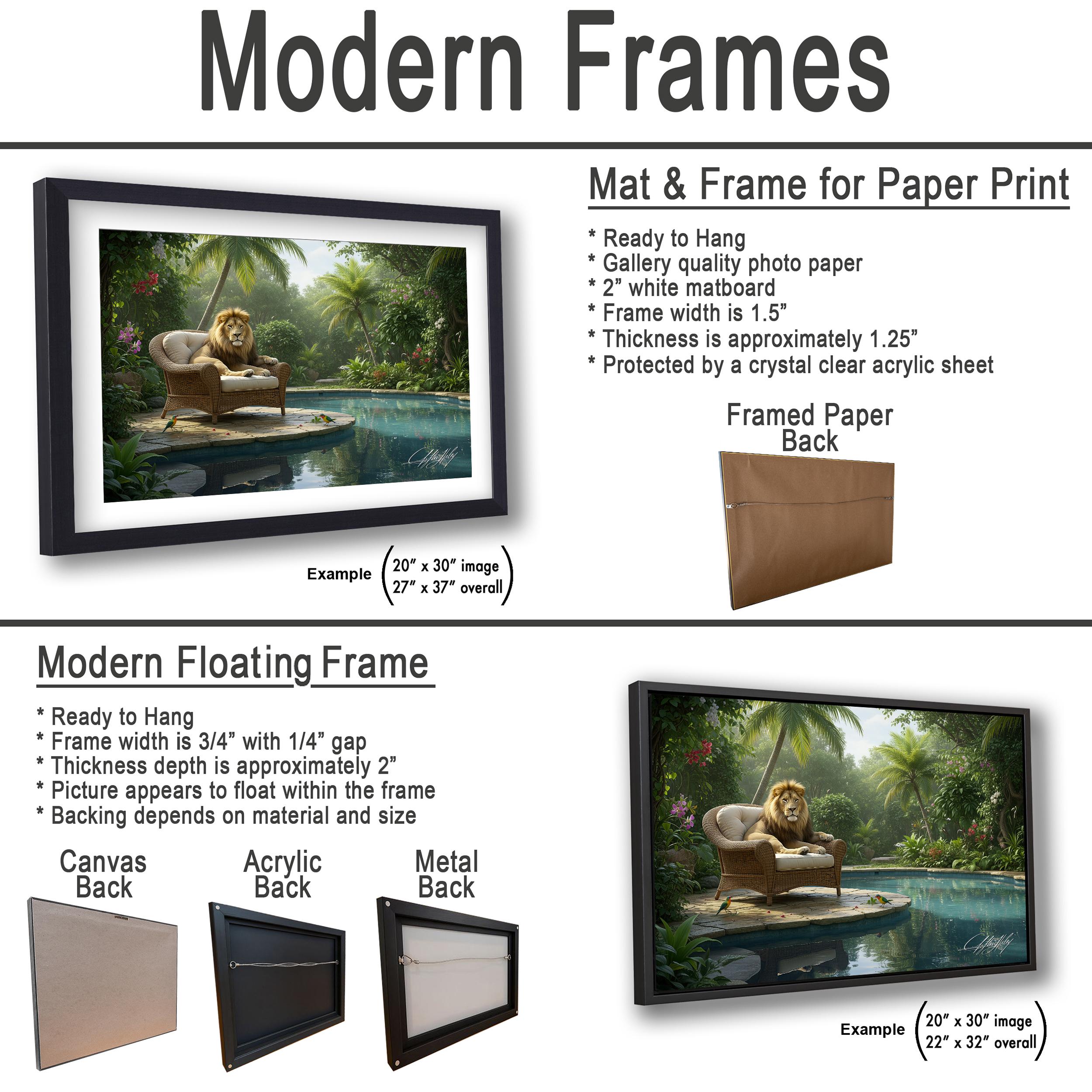 3.1) Only framed paper prints, acrylics and aluminum/metal prints will have a 2” white mat border.