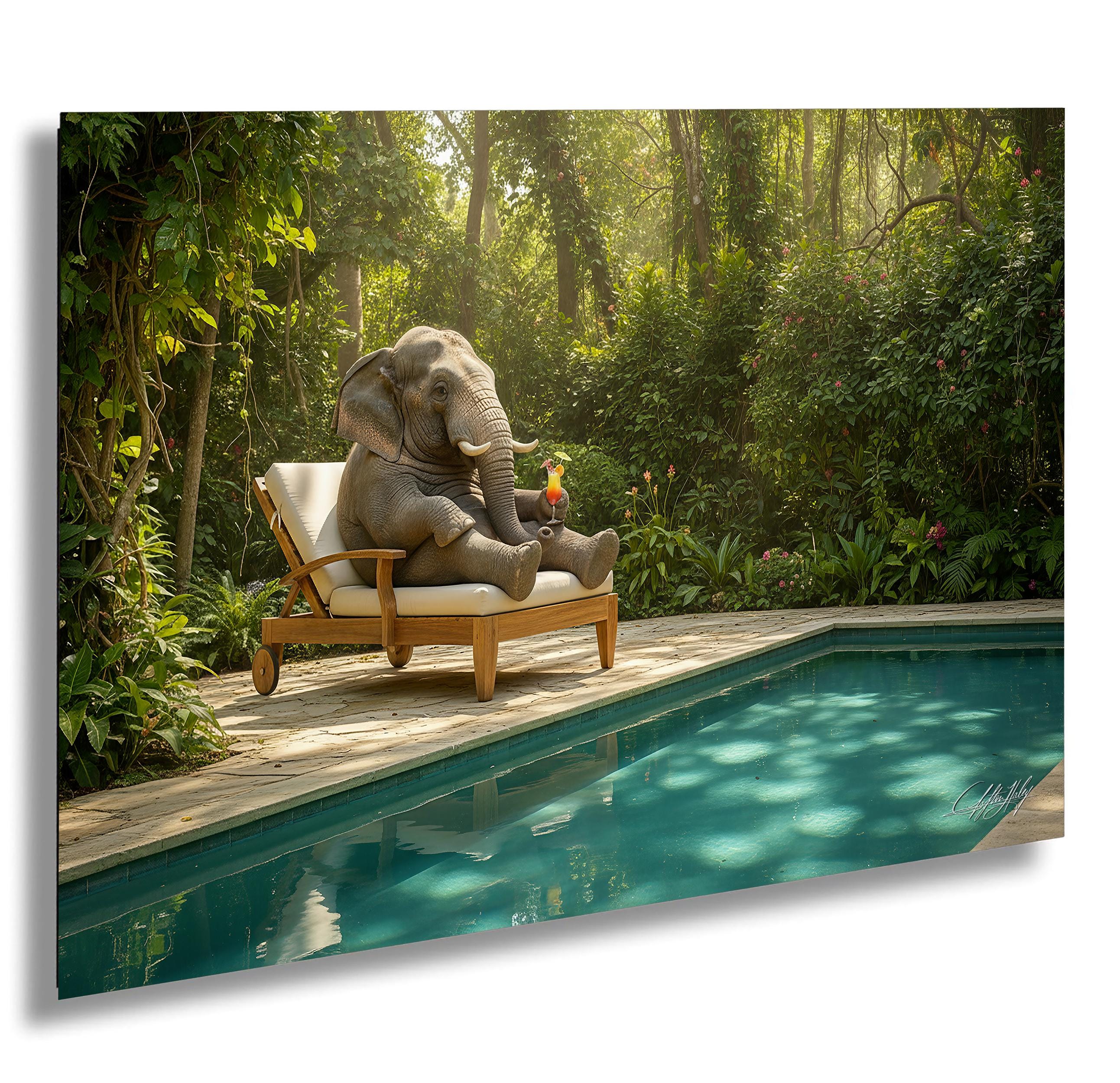 Step into a lush green jungle forest where the gentle presence of an elephant and the elegance of a graceful leopard come to life in this artist signed print. Designed as a made to order art piece, it captures the serene beauty of wildlife, making it a perfect addition for nursery wall decor or as a unique wildlife gift. This vibrant wall art print brings nature’s tranquility and charm into your living space with every brushstroke.