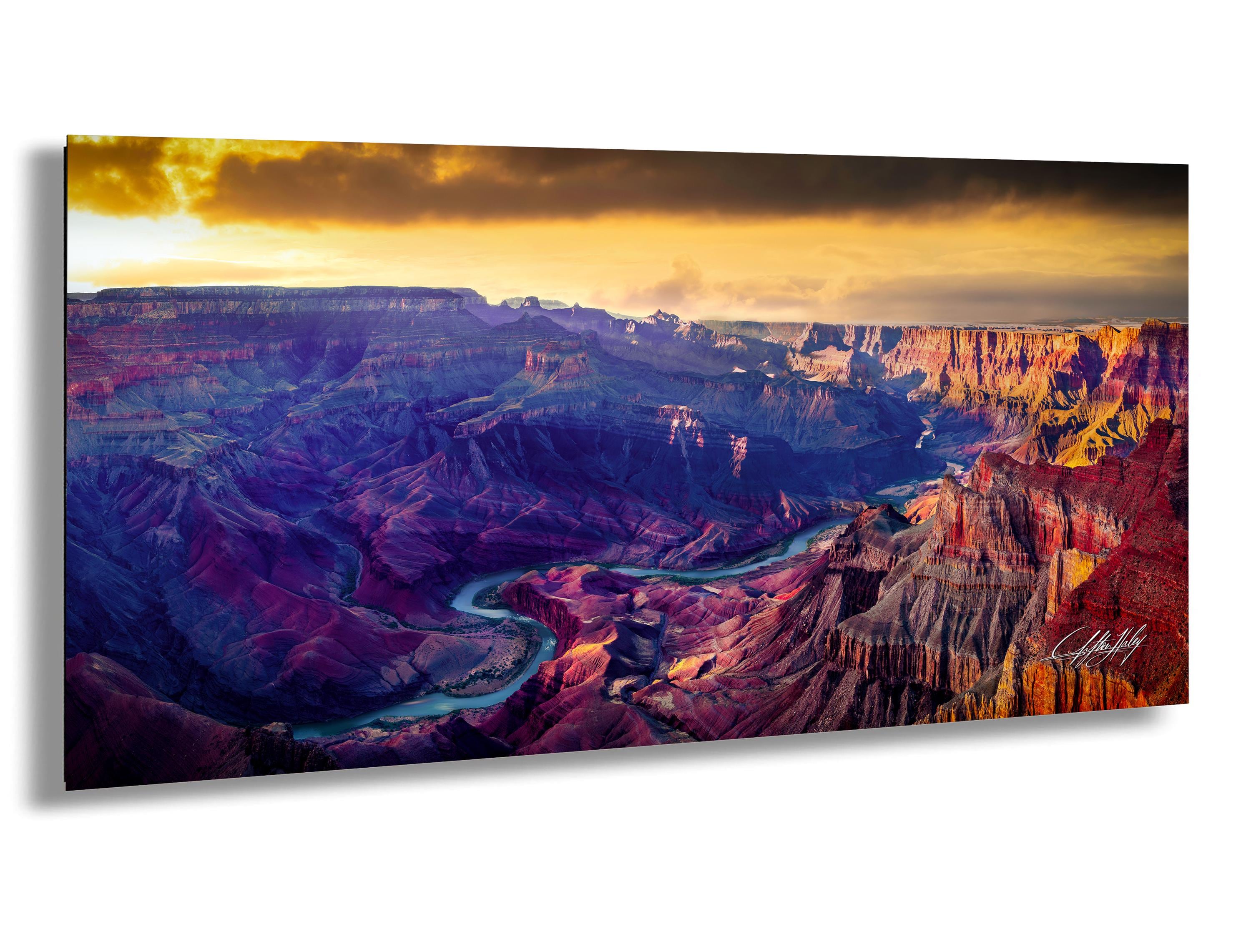 Experience the breathtaking beauty of the Grand Canyon's southern rim with this Hopi Point Arizona print, capturing a stunning sunset landscape that brings warm earth tones and desert scenic charm into your home. This fine art photography piece highlights the Colorado River view winding through the canyon, perfect for nature lovers and national park decor enthusiasts.
