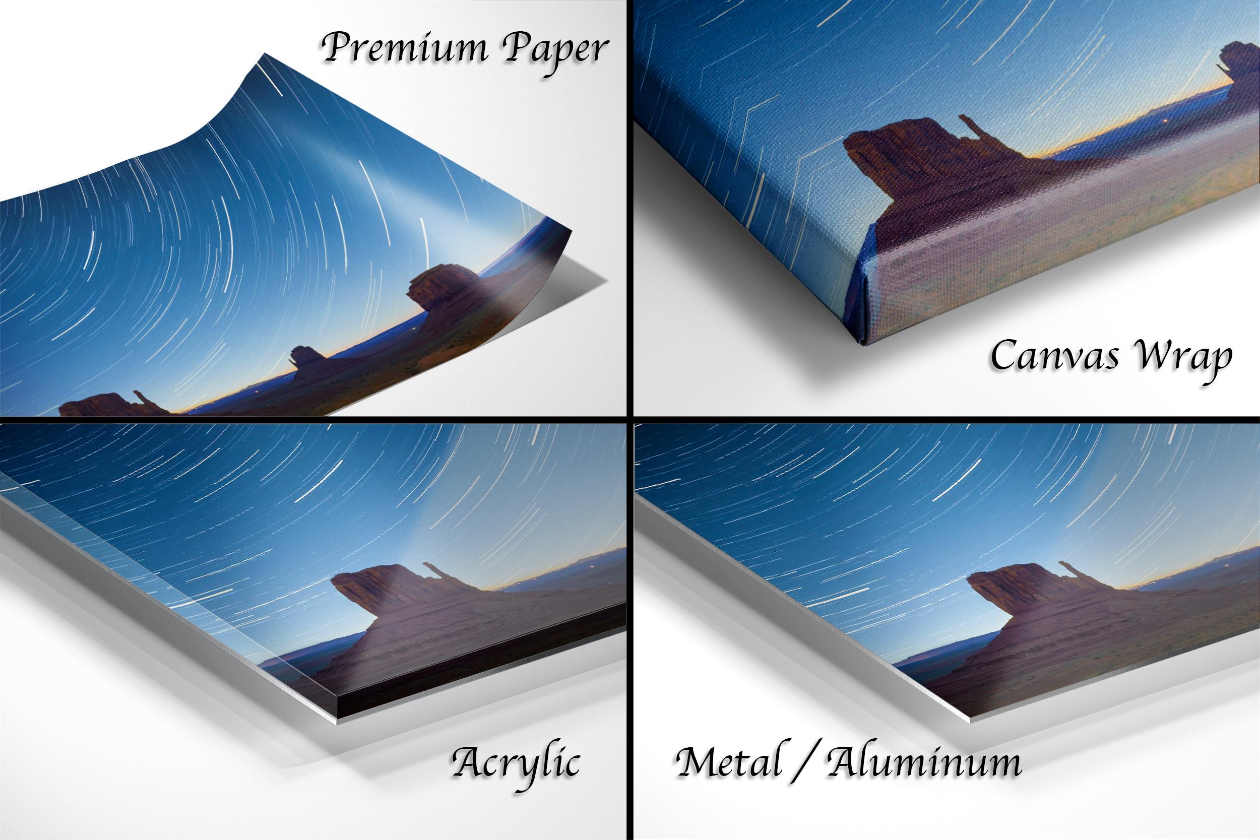 - ✅ Fine art landscape photography showcasing Monument Valley's Mittens and Merrick Butte beneath dynamic star trails