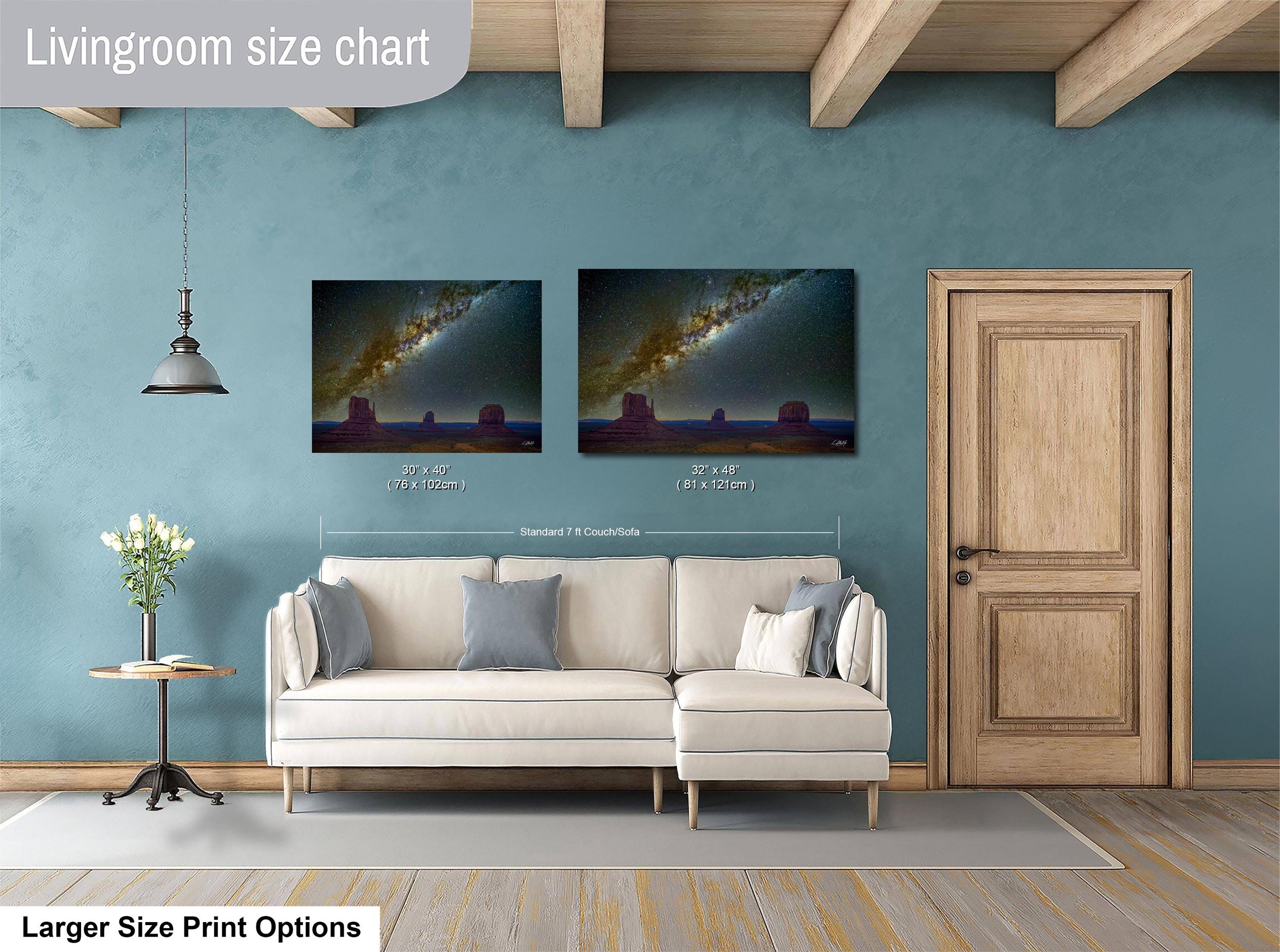 Under the vast expanse of the desert night sky, this Milky Way print beautifully captures the celestial river flowing over Monument Valley’s iconic mittens, inviting admirers of southwestern desert landscapes to pause and reflect. Inspired by the sacred lands of the Navajo Nation, this fine art photography merges natural wonder with boho desert decor, making it a perfect gift for travel lovers and nature enthusiasts. Each piece tells a story where stars meet earth in timeless harmony.