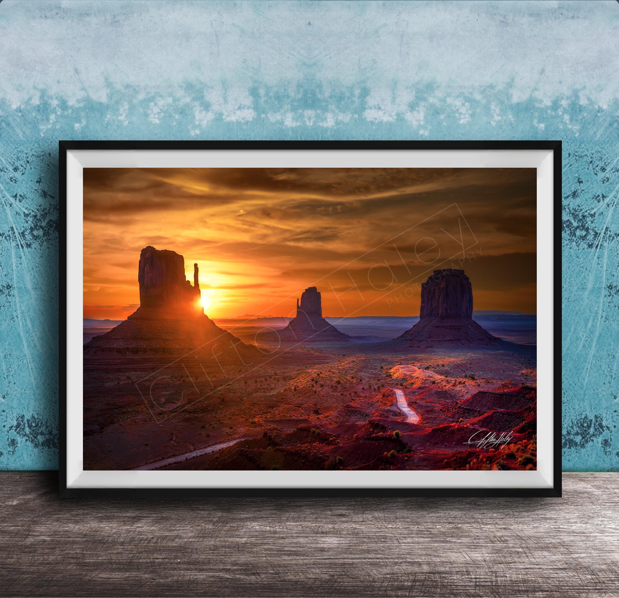 As the first light of dawn paints the sky, this Monument Valley mittens print beautifully captures the serene essence of a sunrise sunset print, inviting you to immerse yourself in the timeless Southwestern desert landscape. Inspired by the sacred vistas of the Navajo Nation, this fine art photography transforms your space with soulful elegance and a deep connection to nature’s artistry. Perfect for those who cherish boho desert wall art or seek a meaningful travel gift for her, this piece tells a story as vivid as the crimson sand desert itself.