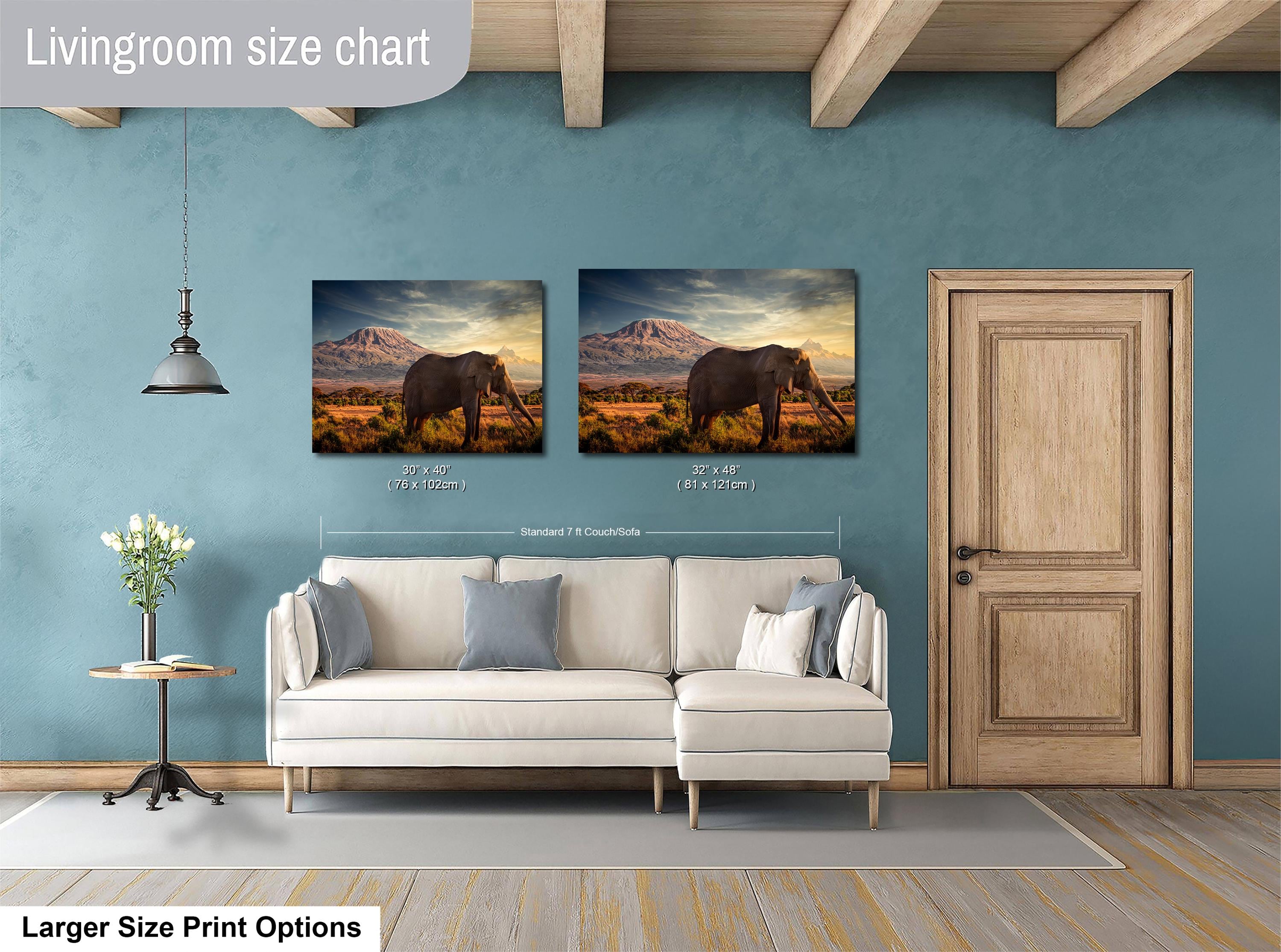 This exclusive wildlife canvas print brings the grandeur of Africa’s legendary elephants into your home, perfect for lovers of maximalist boho art and safari-inspired interiors. Each piece is made to order, ensuring a unique and personal touch that celebrates nature’s resilience and beauty.