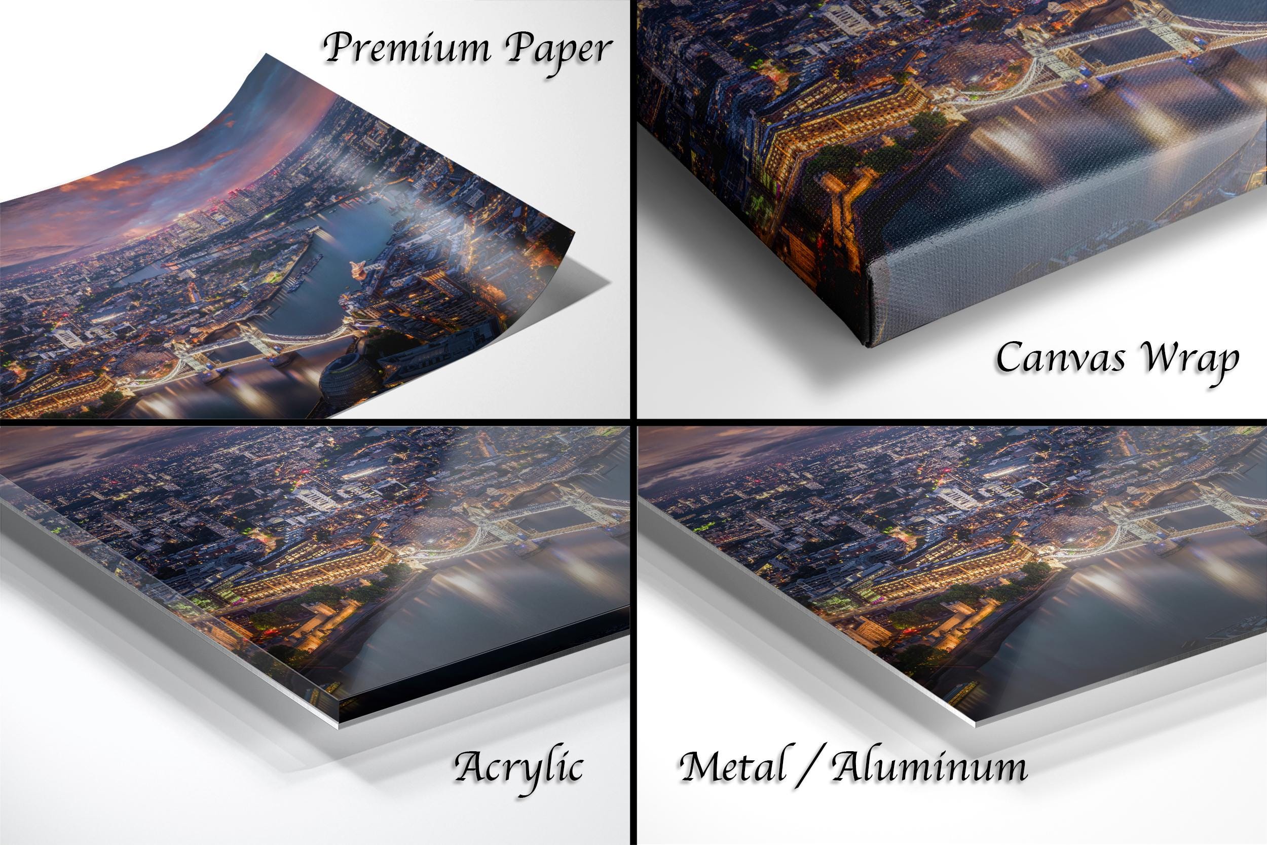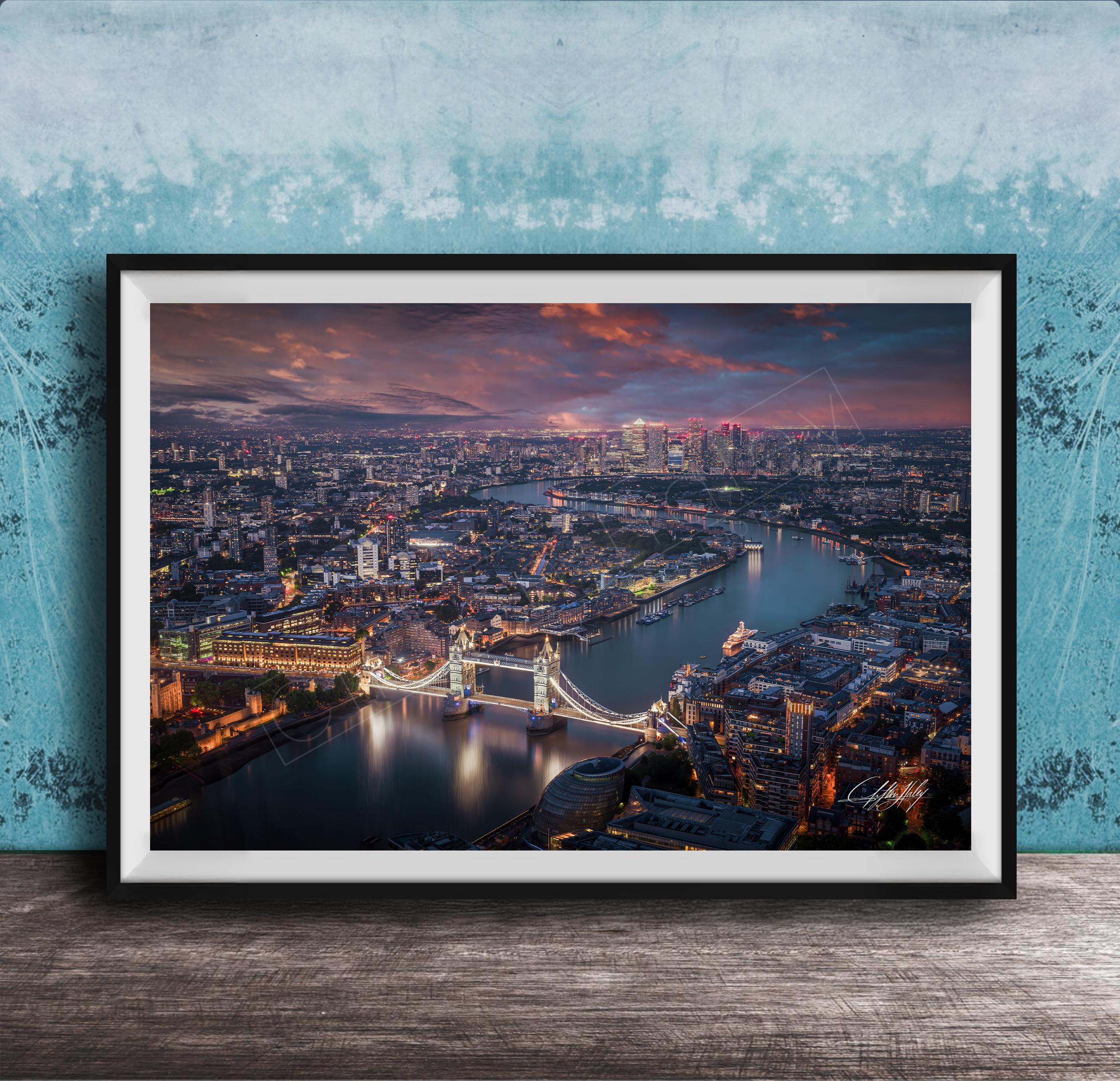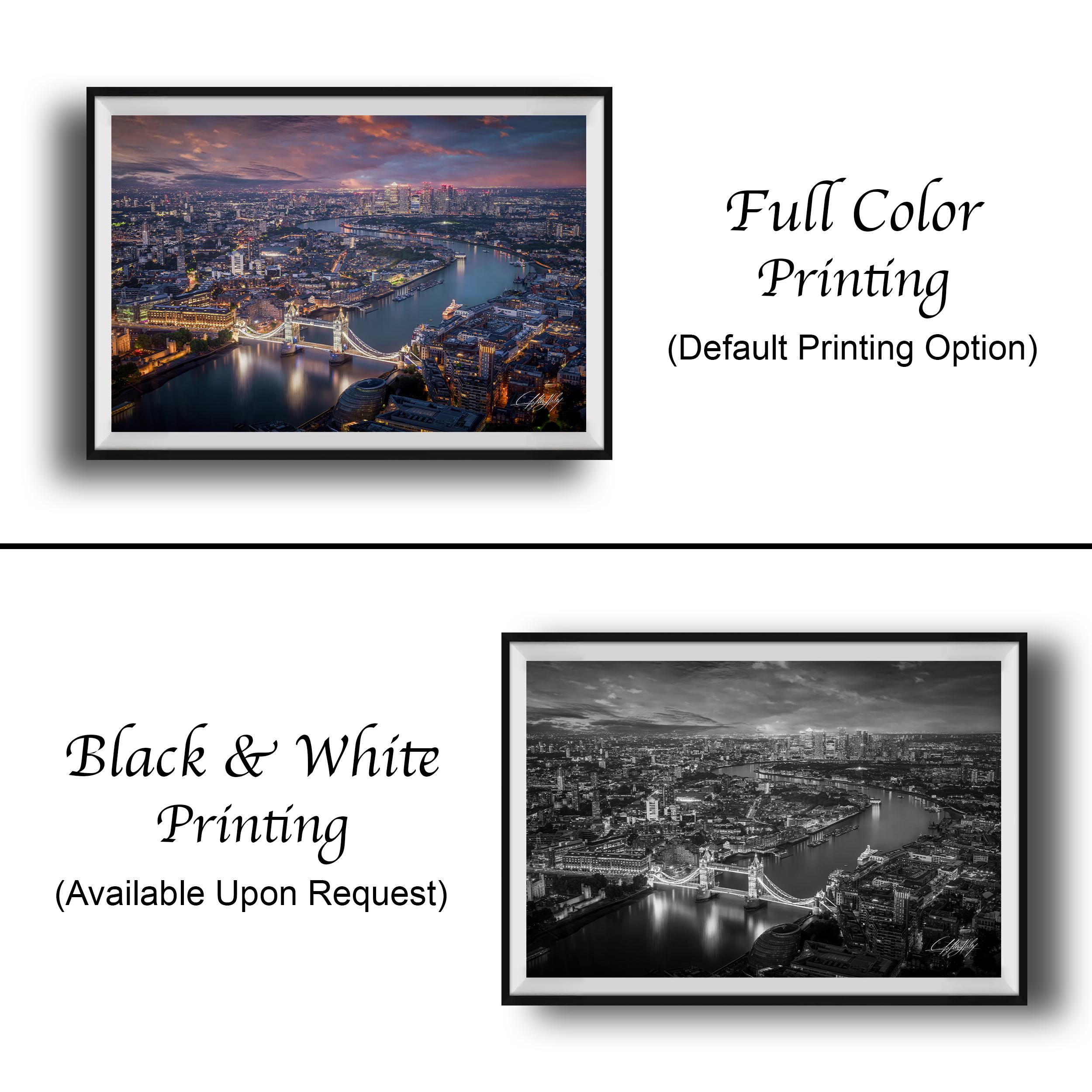Perfect as London wall art or a travel wall art gift, this piece brings the majesty of England’s capital into your home. Each print is made-to-order with the artist’s signature authenticating its uniqueness. Choose from framed paper prints with a 2" white mat border or canvas prints with flush mounting.