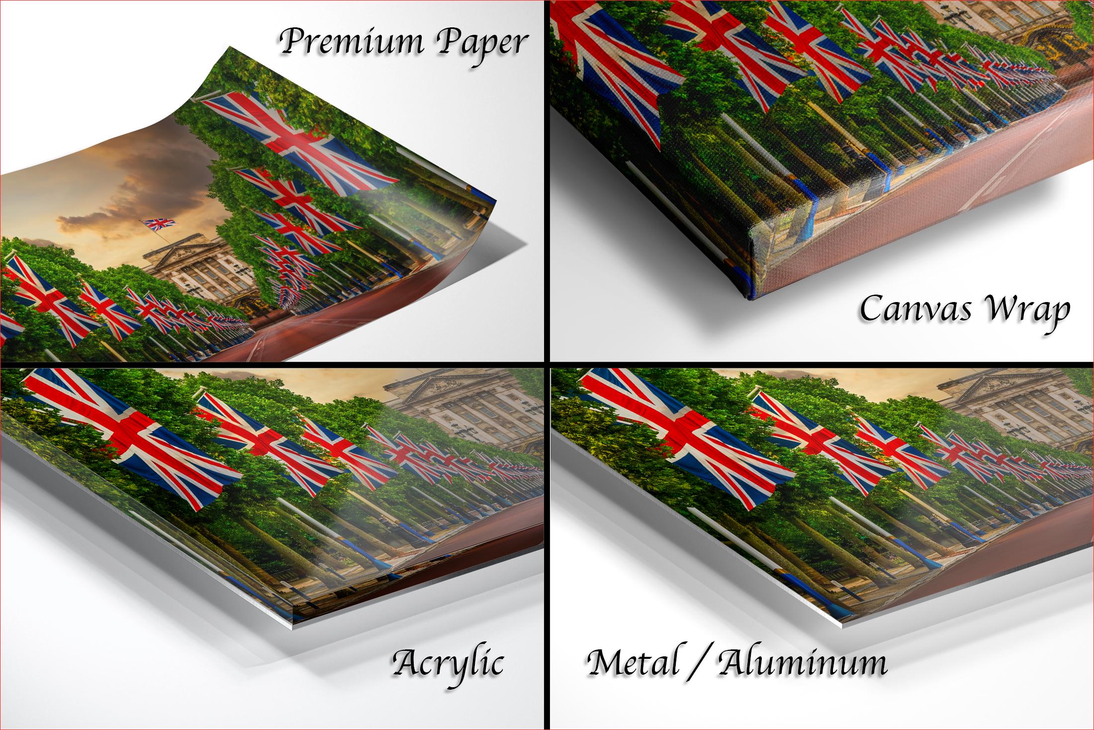 3.1) Only framed paper prints will have a 2" white mat border. 3.2) Canvas, acrylic and metal framed prints will be mounted on a "floating" style frame.