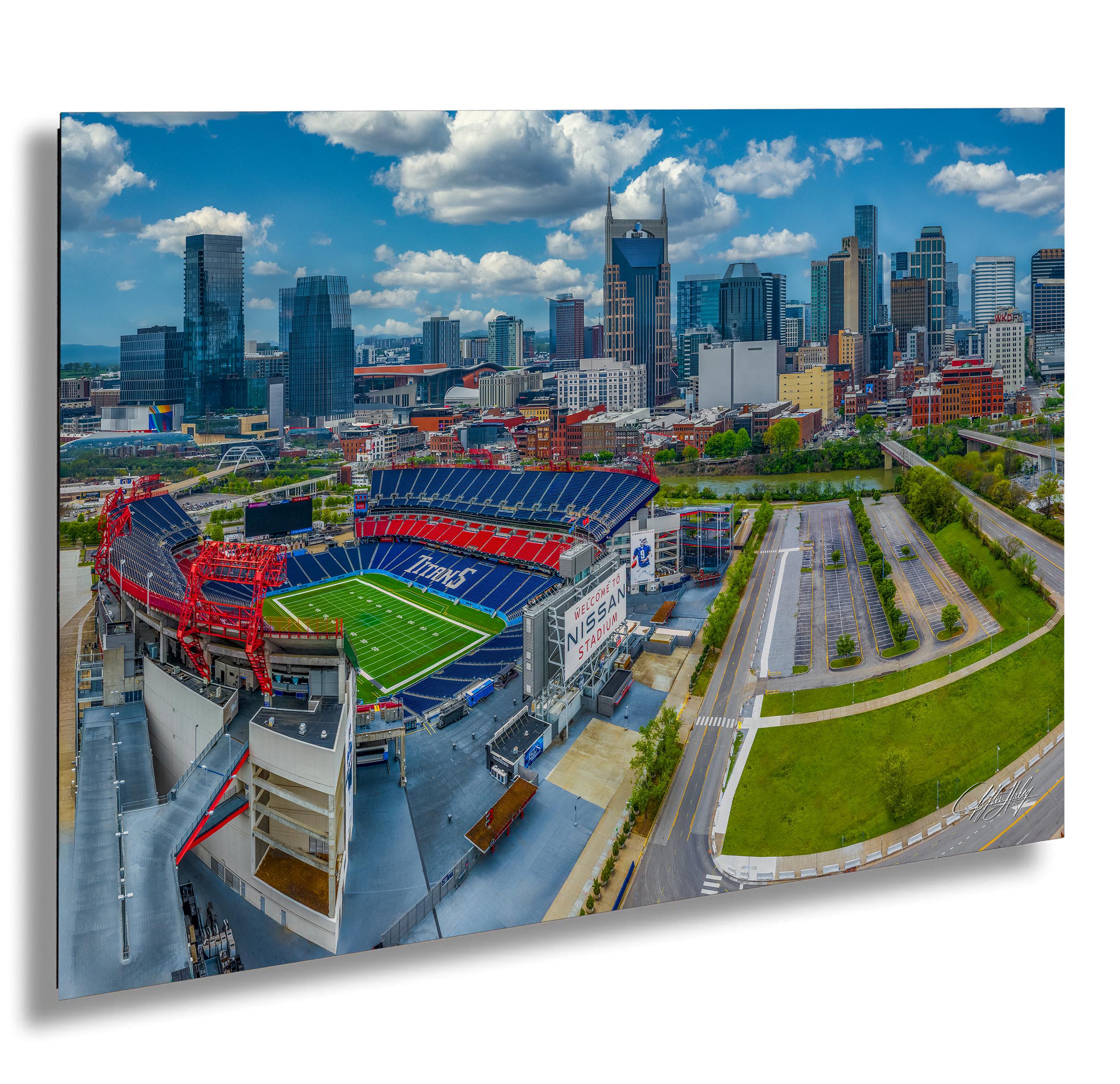 Discover the serene beauty of Nashville through this captivating cityscape, where the calm of the Titans stadium meets the gentle flow of the Cumberland River. This artwork captures the essence of Nashville watercolor artistry, blending the city’s skyline city art with reflections that tell a story of quiet strength and timeless presence. Inspired by moments of stillness beneath a Tennessee sky, it invites you to experience Music City's refined spirit in your own space.
