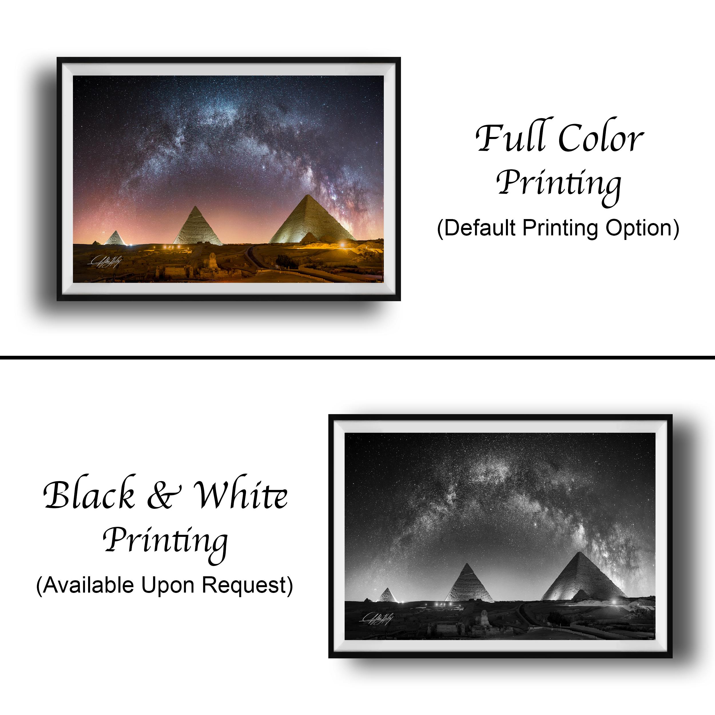 This photograph is for the collector who values endurance over trend. A statement of refinement, history, and cosmic alignment, where the Pyramids of Giza exist not as relics, but as living architecture beneath an eternal sky.