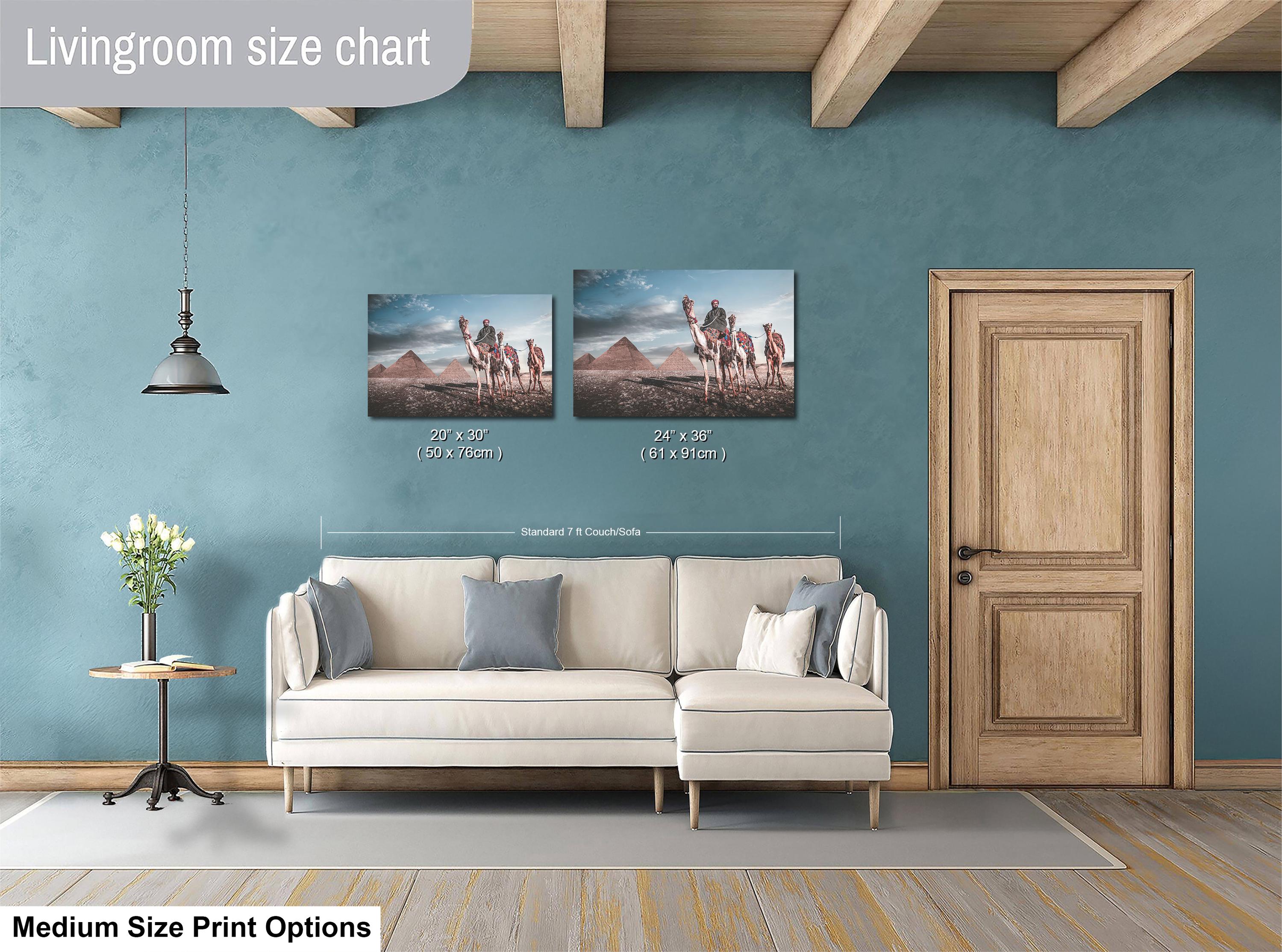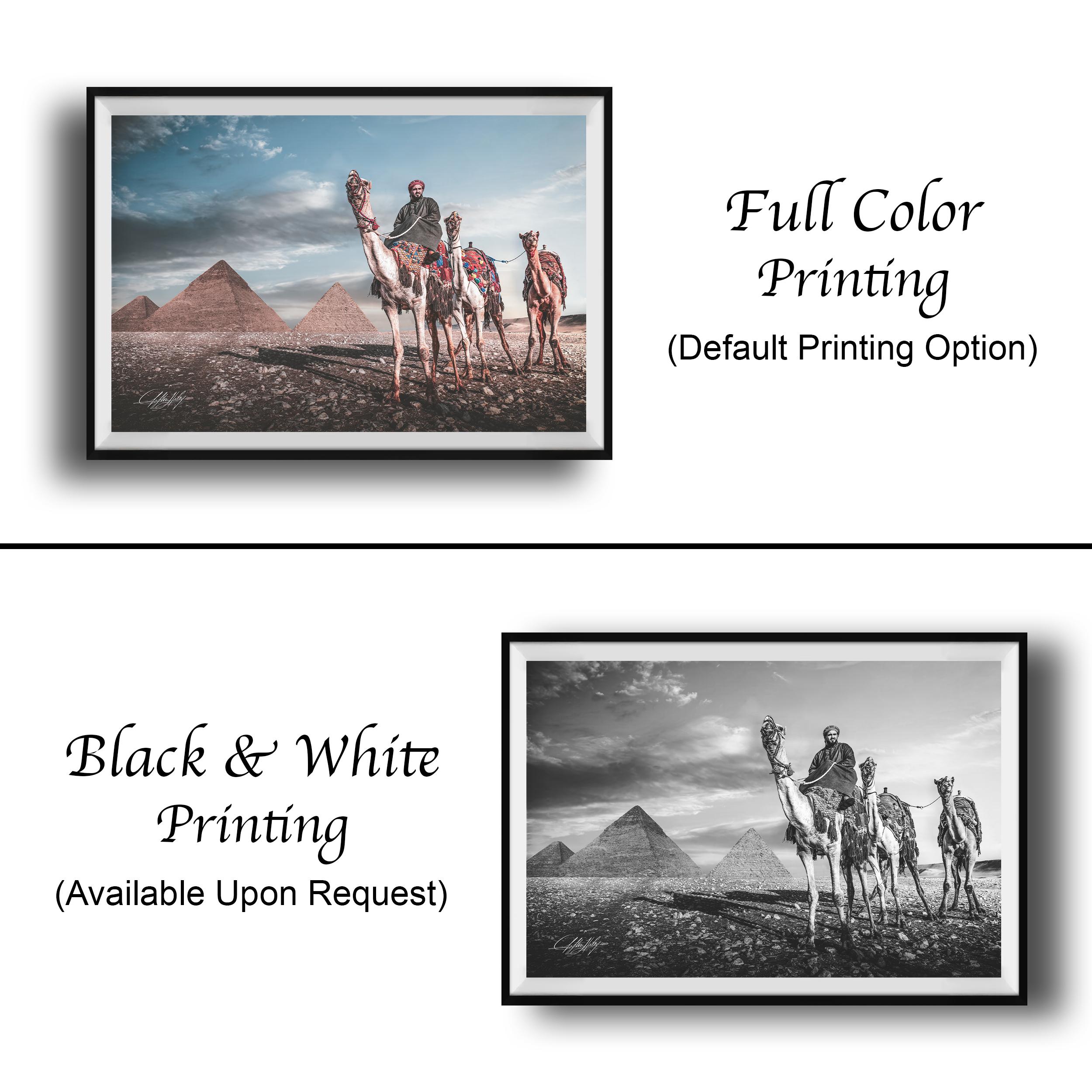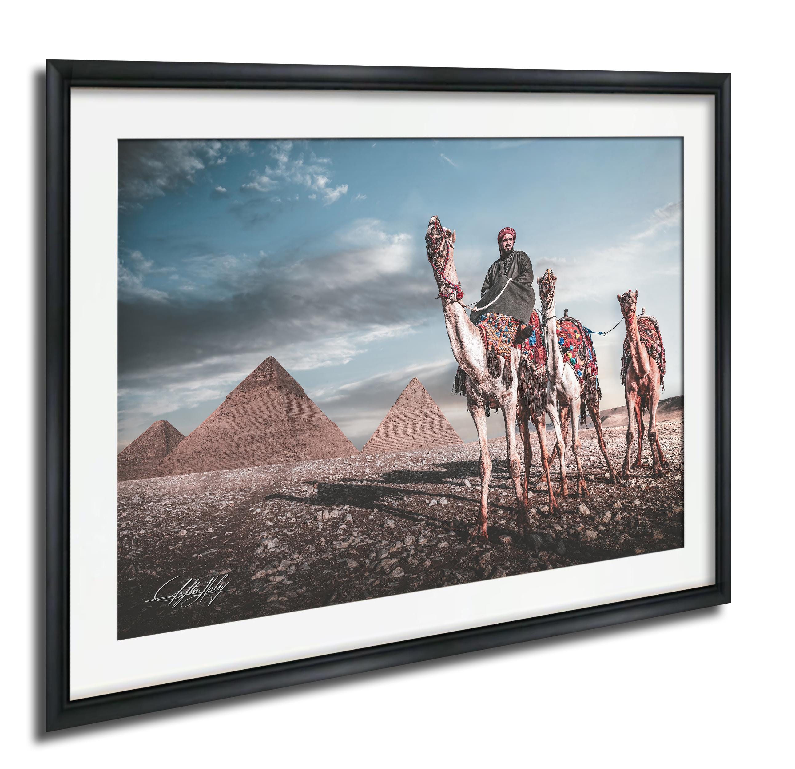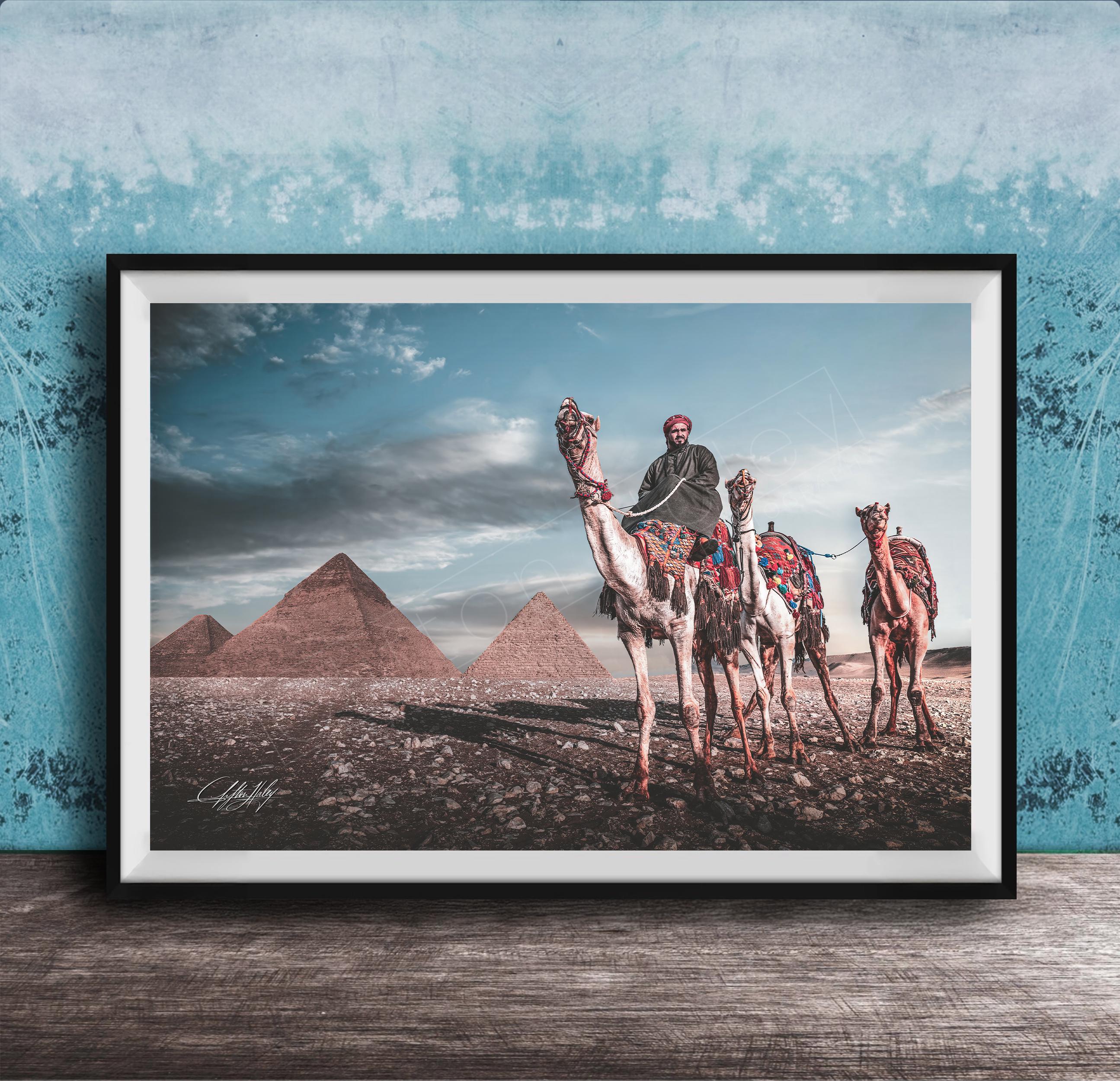 As I framed the image, I understood this photograph was not about scale, but continuity. This piece is created for the collector who values heritage over novelty. A refined statement of place and passage, where the enduring presence of the Pyramids of Giza and the quiet procession of camels embody the soul of Egypt, timeless, composed, and enduring enough to define a space rather than simply adorn it.