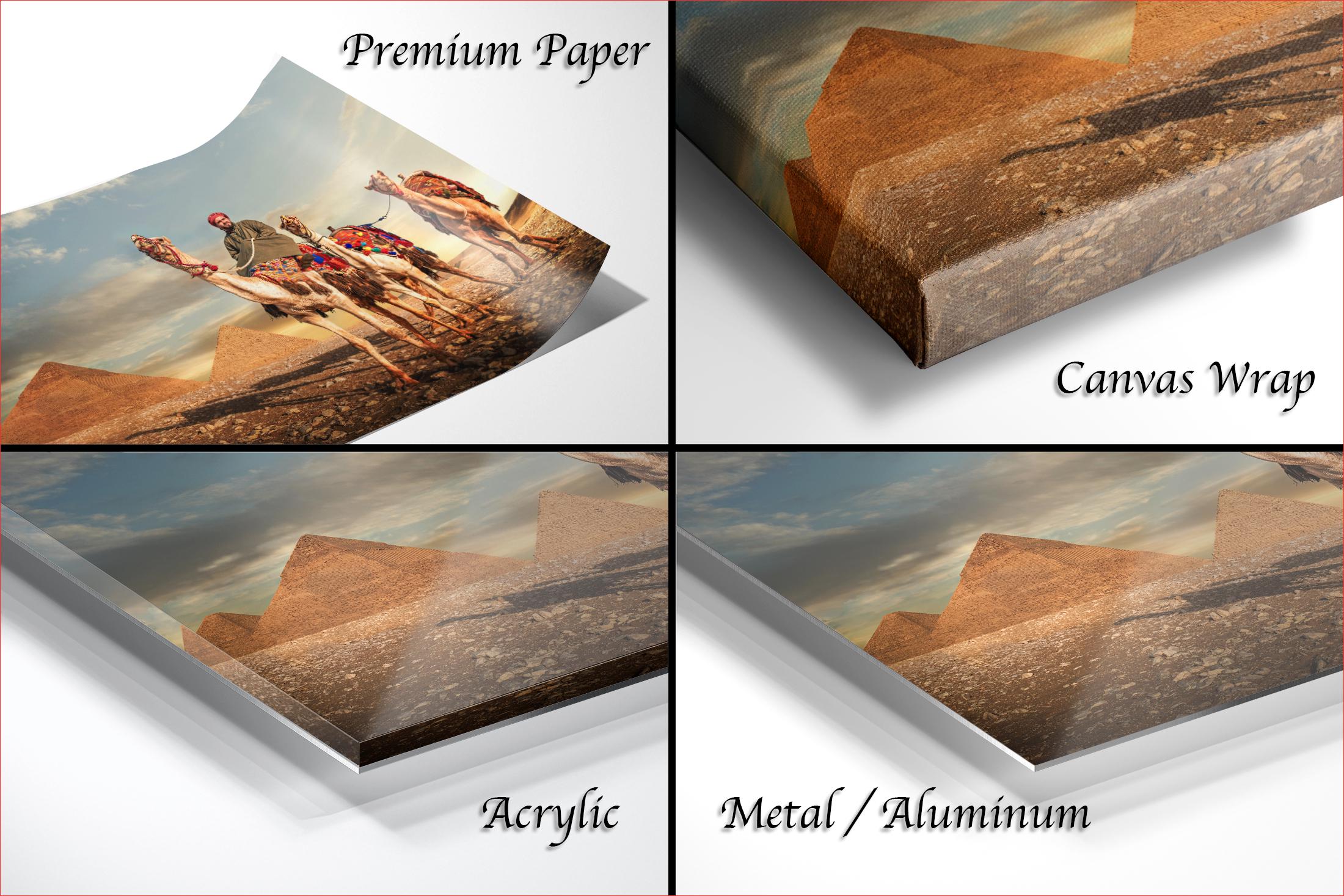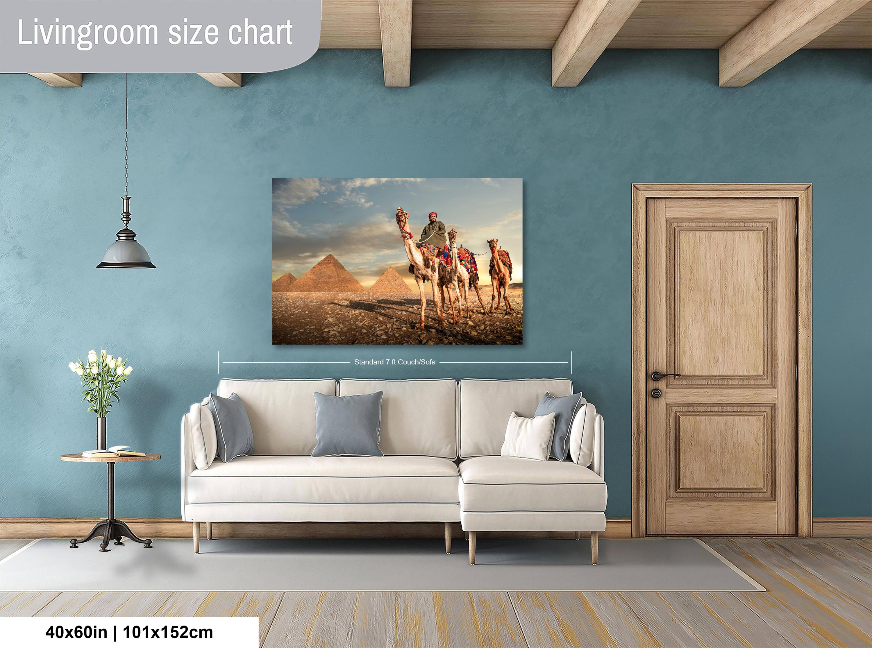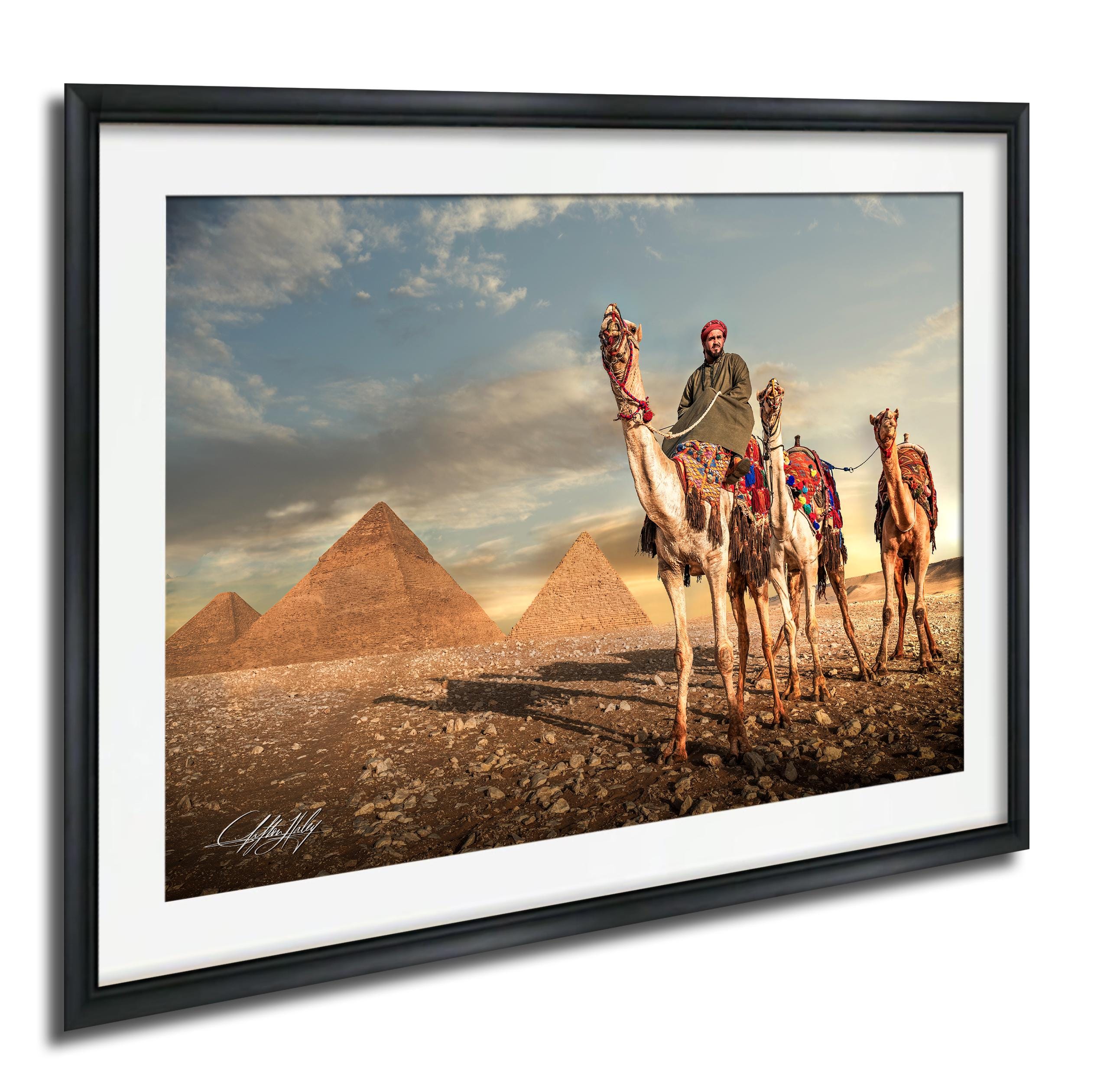 As I framed the image, I understood this photograph was not about scale, but continuity. This piece is created for the collector who values heritage over novelty. A refined statement of place and passage, where the enduring presence of the Pyramids of Giza and the quiet procession of camels embody the soul of Egypt, timeless, composed, and enduring enough to define a space rather than simply adorn it.