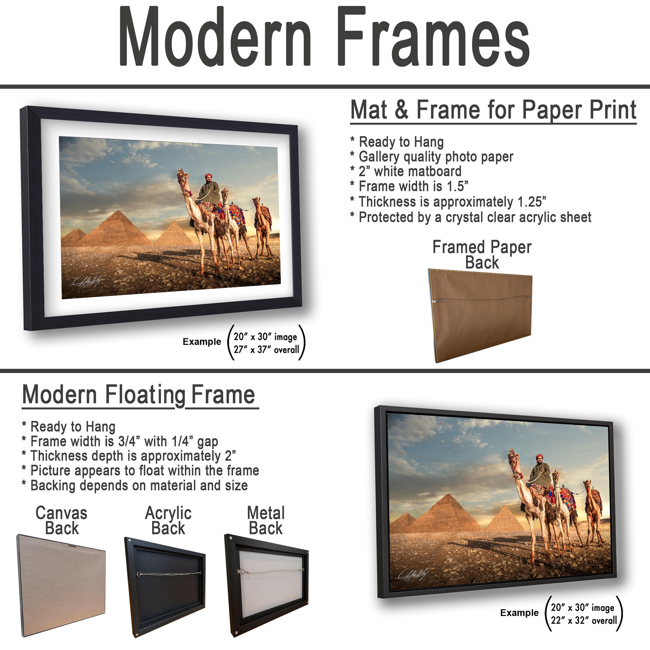 3.2) Canvas, acrylic and metal framed prints will be mounted on a "floating" style frame.
