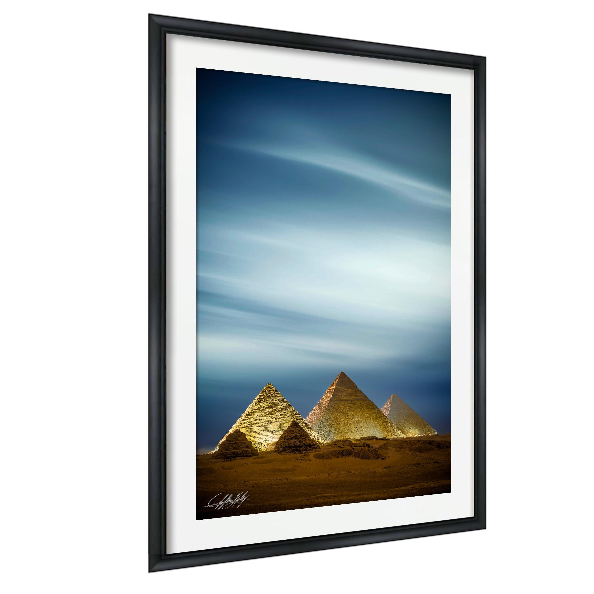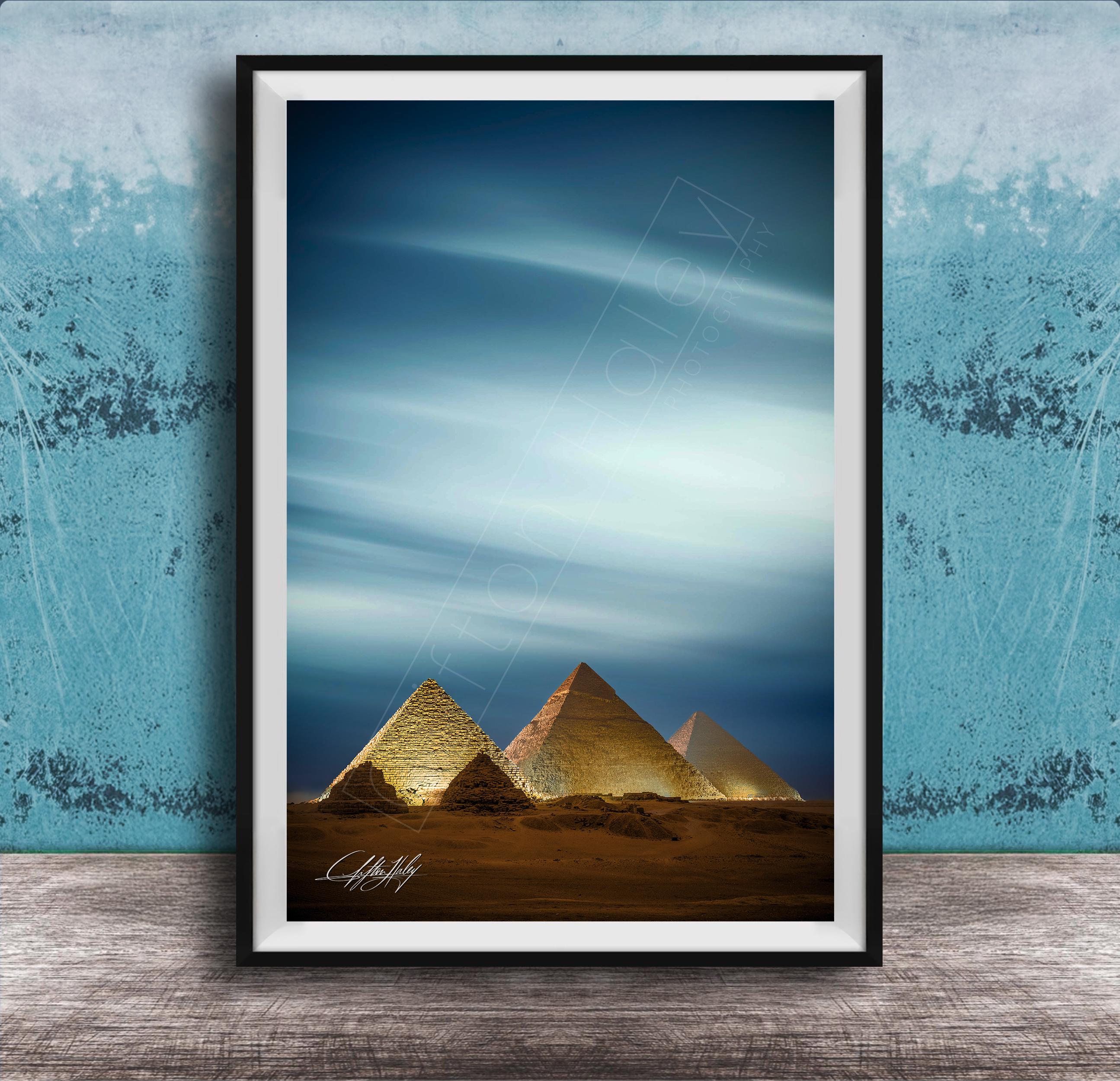 As I composed the frame, I understood this image was not about drama, but permanence. This photograph is created for the collector who values legacy over novelty. A refined statement of endurance and balance, where the Pyramids of Giza, the enduring presence of the Great Pyramid, and the watchful stillness of the sphinx exist together, not to fill a space, but to define it.
