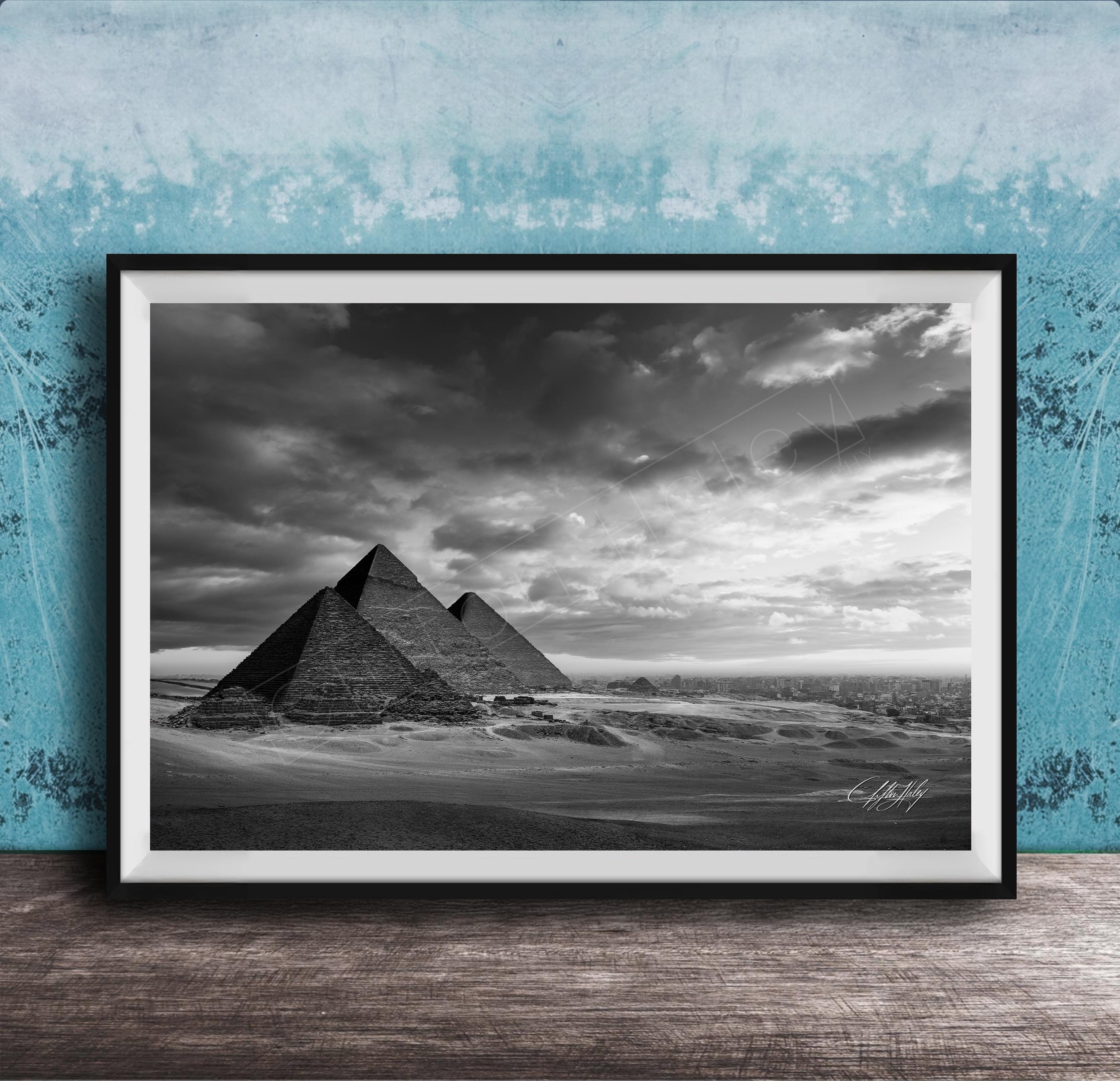 As I composed the frame, I understood this image was not about drama, but permanence. This photograph is created for the collector who values legacy over novelty. A refined statement of endurance and balance, where the Pyramids of Giza, the enduring presence of the Great Pyramid, and the watchful stillness of the sphinx exist together, not to fill a space, but to define it.