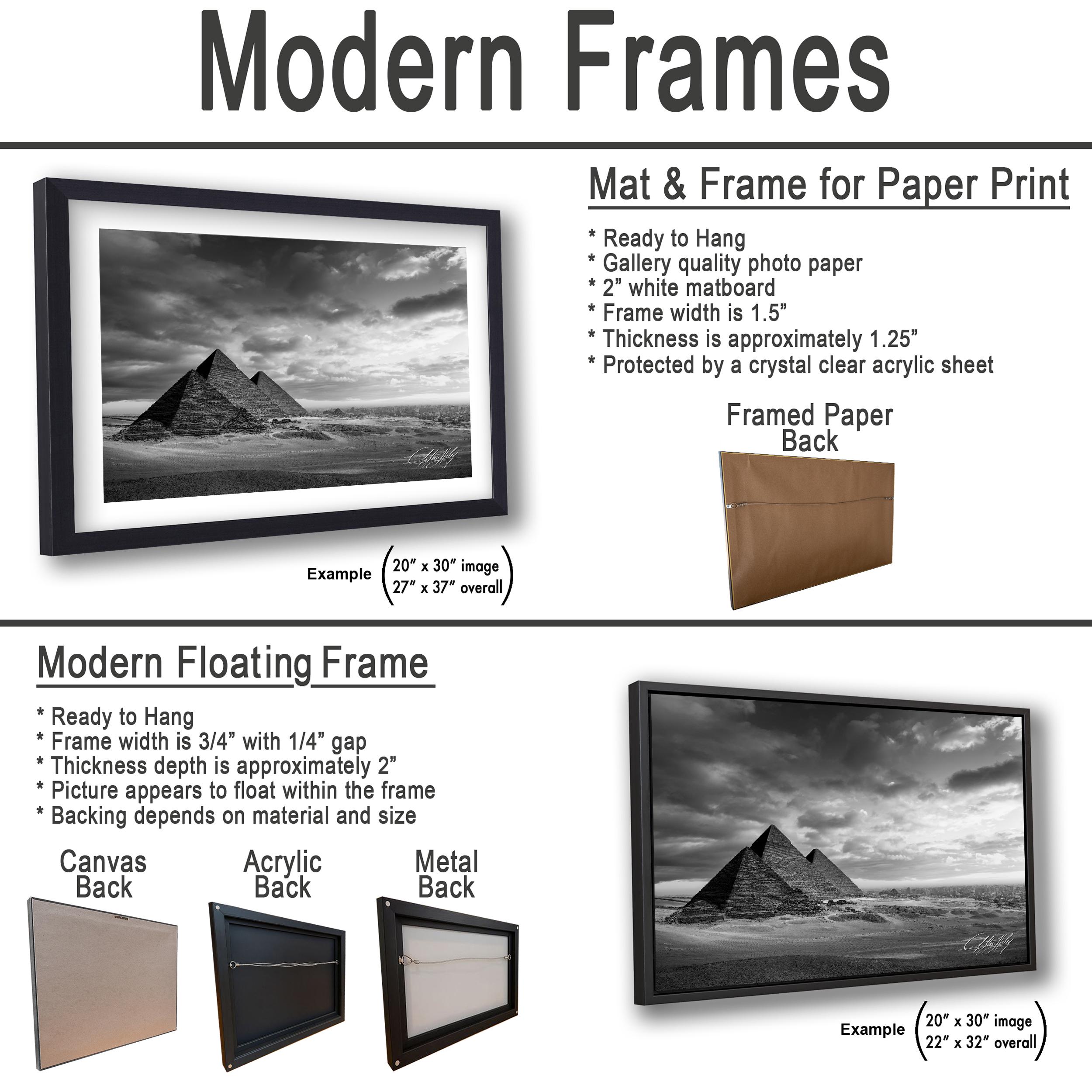 3.2) Canvas, acrylic and metal framed prints will be mounted on a "floating" style frame.