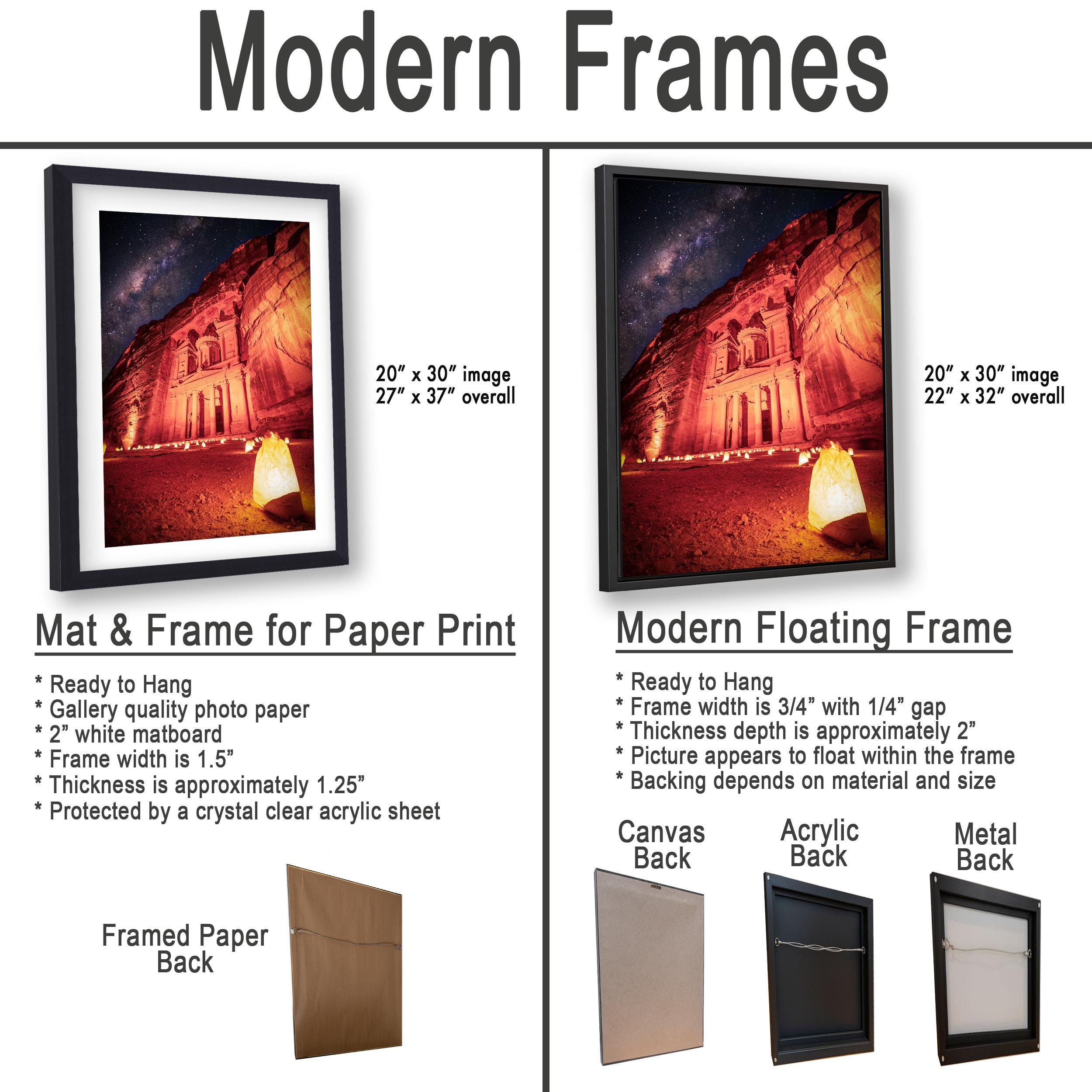 3.2) Canvas, acrylic and metal framed prints will be mounted on a "floating" style frame.