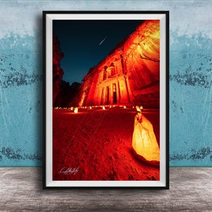 Experience the quiet majesty of candlelight in Petra, where fine art photography captures the desert candlelight decor in stunning detail. This artist signed print brings the timeless beauty of the Rose City into your home, evoking the golden hour wall art ambiance that transforms any space. Made to order with care, each piece invites you to pause and reflect on history’s silent stories.