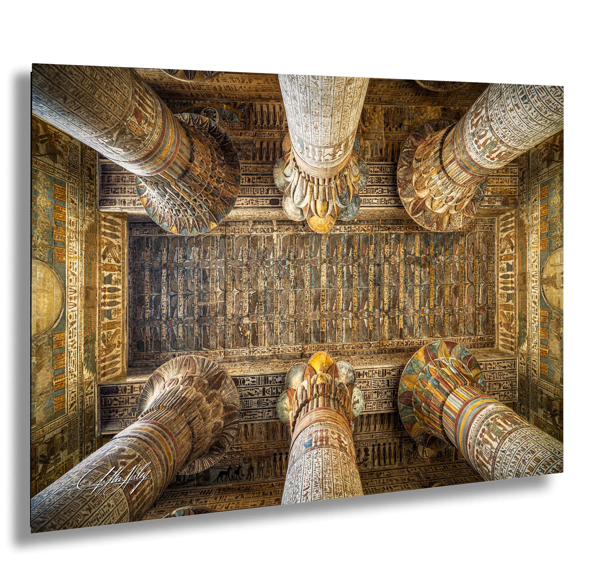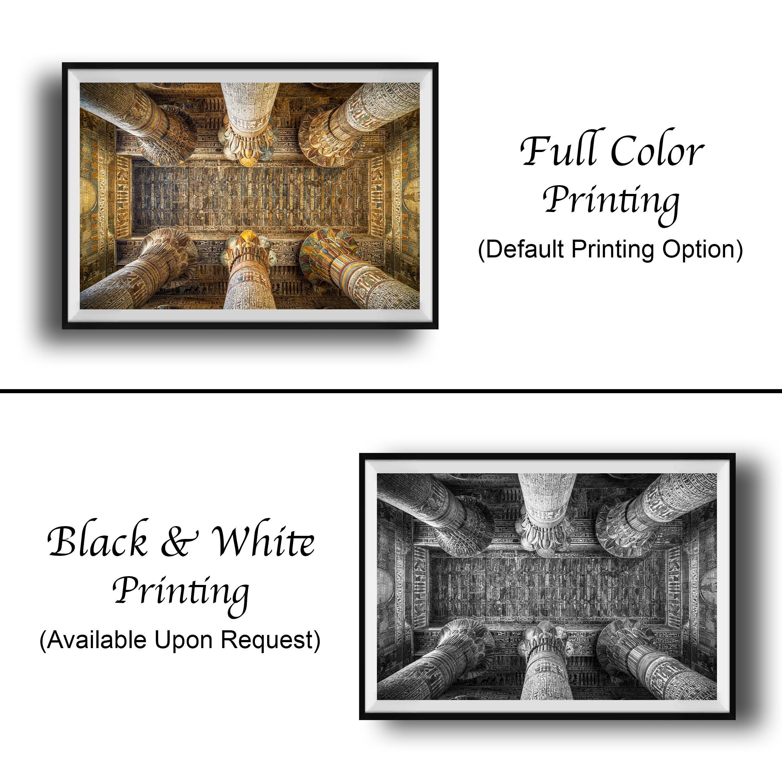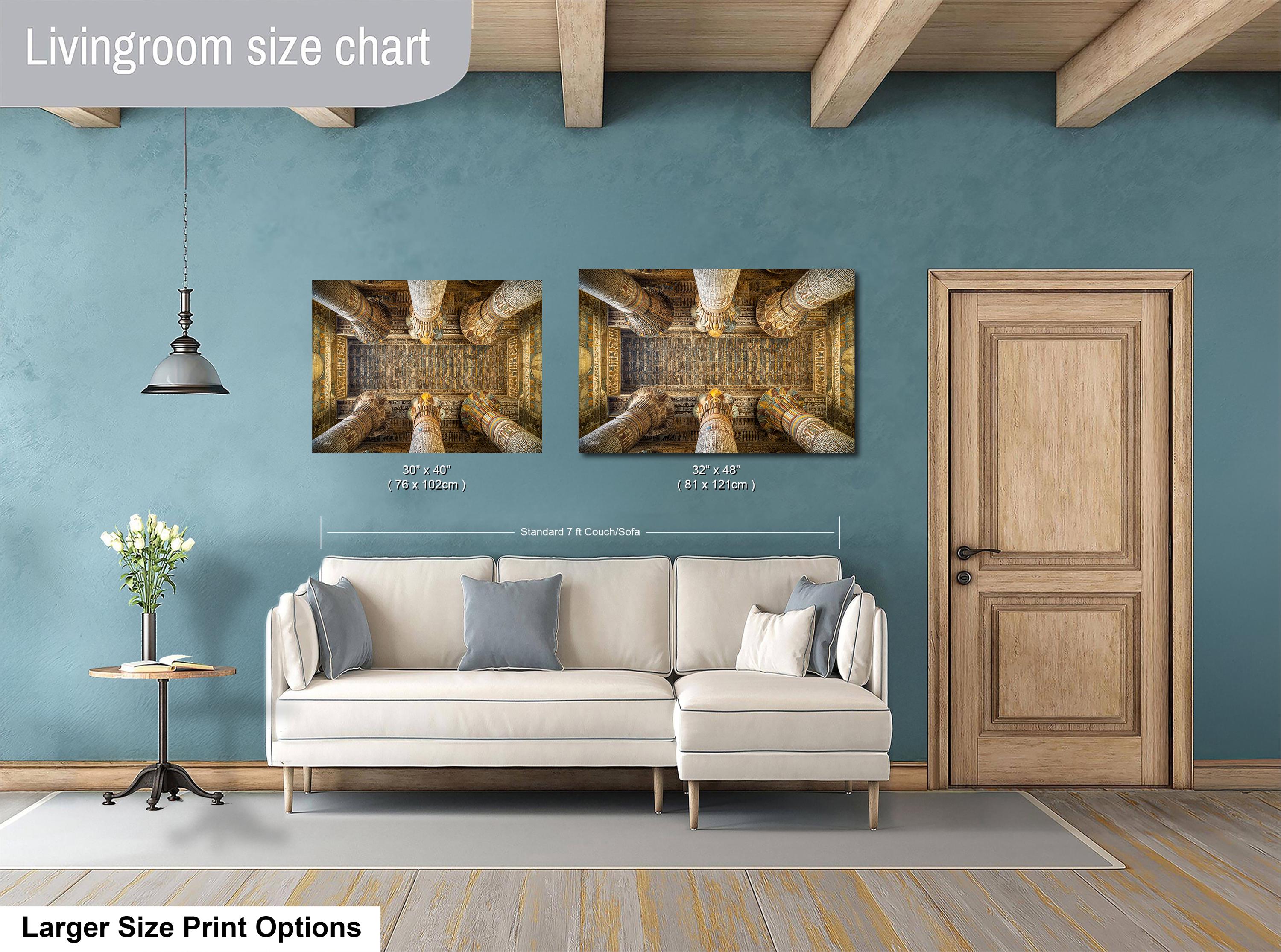 Step into a moment where ancient artistry meets timeless beauty with this Esna Temple wall decor. Inspired by the intricate hieroglyphs and lotus capitals captured in this sphinx art print, each piece invites you to experience the sacred precision of Egyptian craftsmanship. The interplay of light and shadow in the original photograph brings these columns to life, making it a stunning addition to any space.