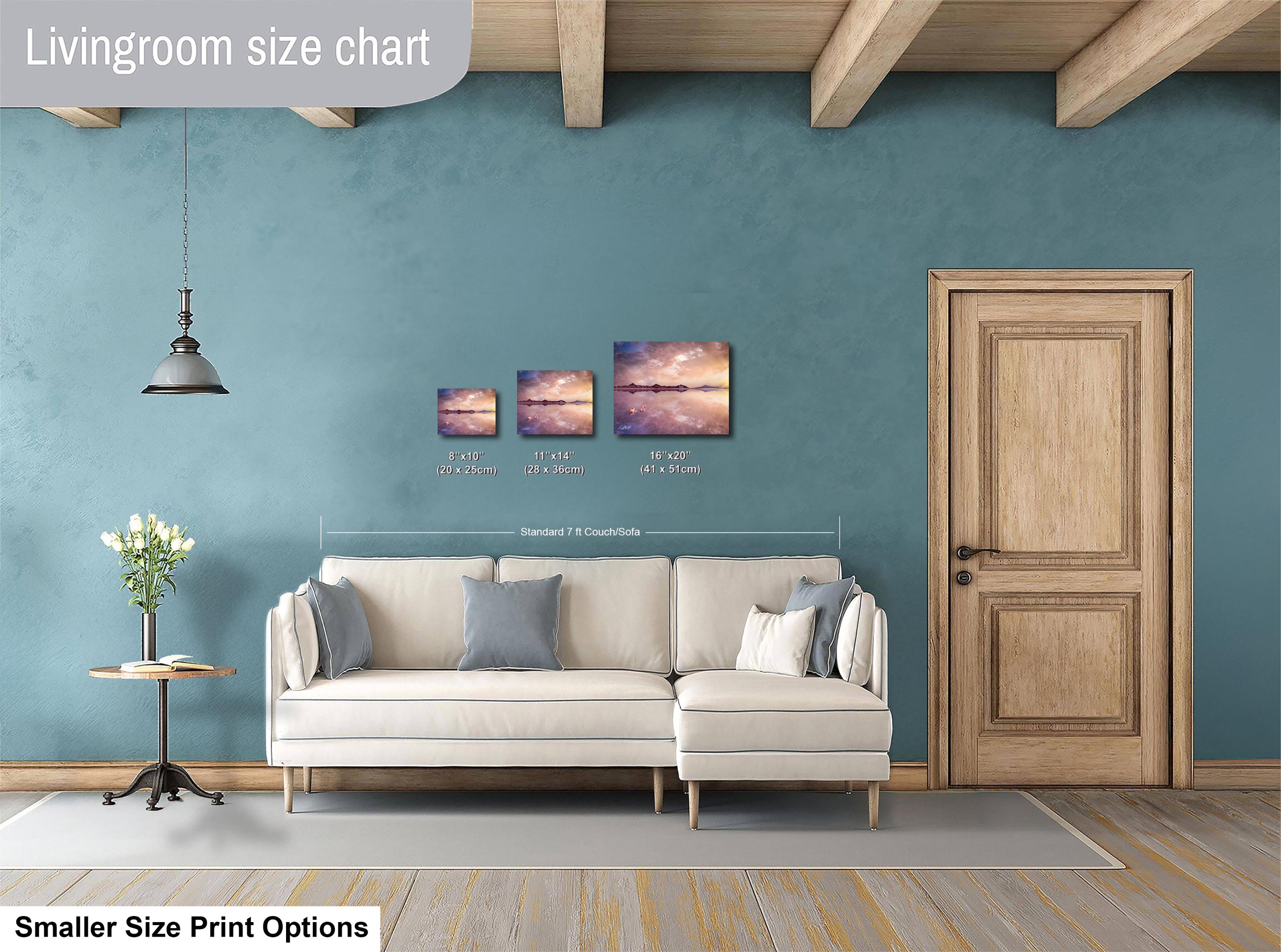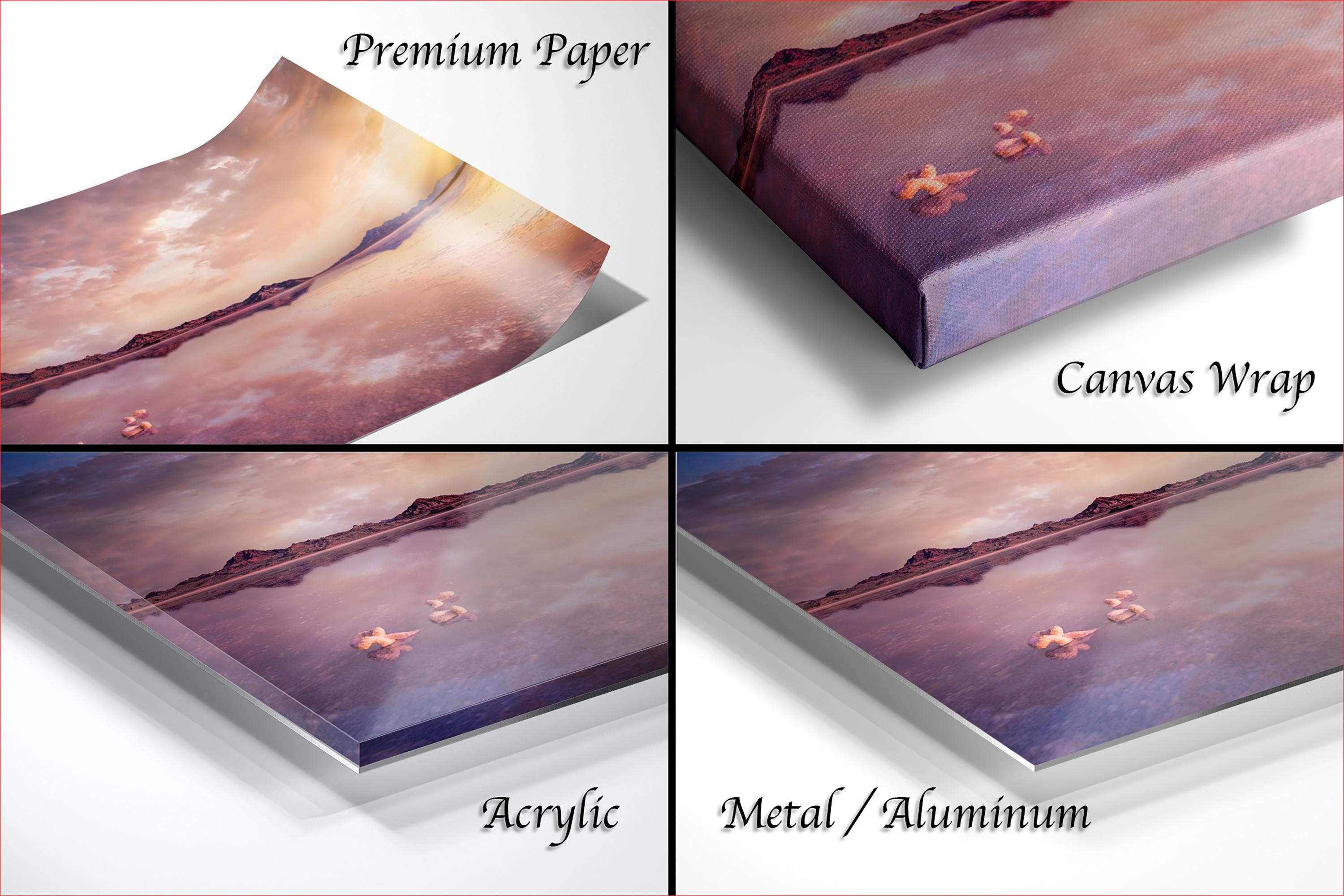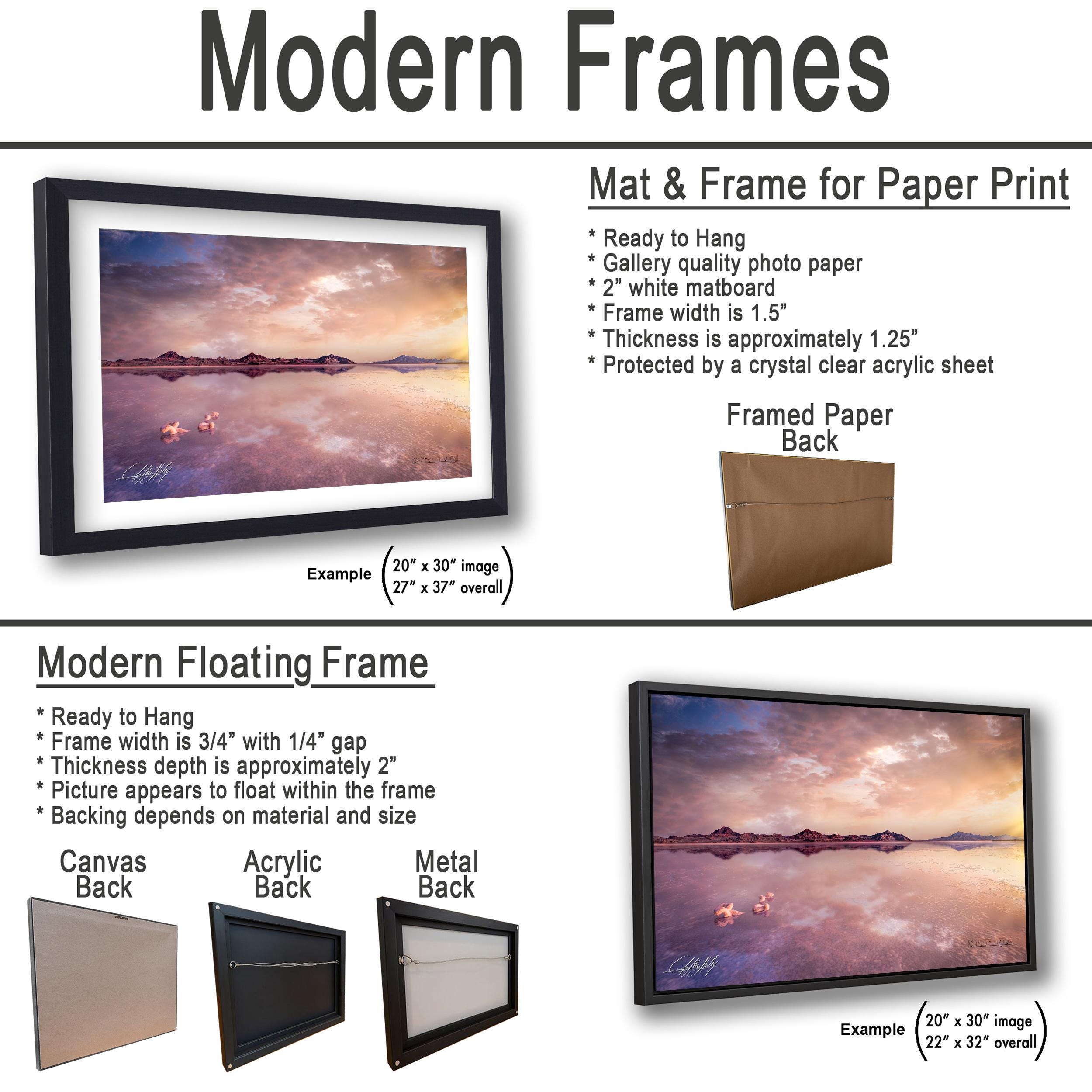 3.1) Only framed paper prints, acrylics and aluminum/metal prints will have a 2" white mat border. 3.2) Canvas prints will be a flush mounted (no mat border) to the frame.