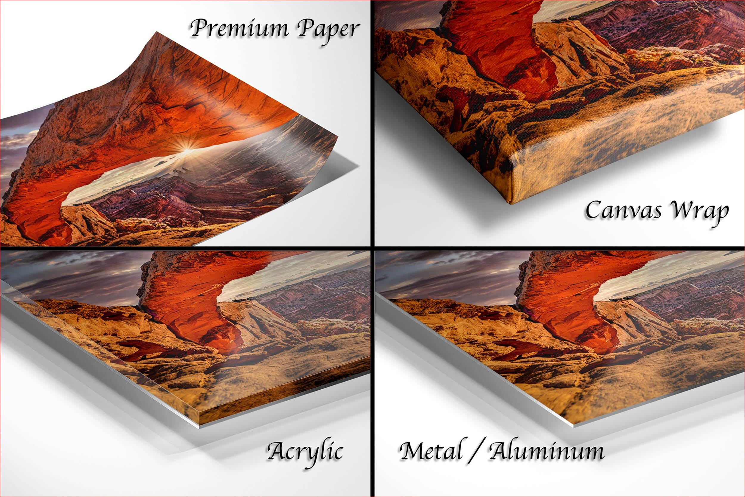 Celebrate the stunning Utah landscape print featuring fine art photography, artist signed in the corner to guarantee authenticity and uniqueness. Each piece is carefully flush mounted on canvas without a white mat border, highlighting vivid colors and intricate details.