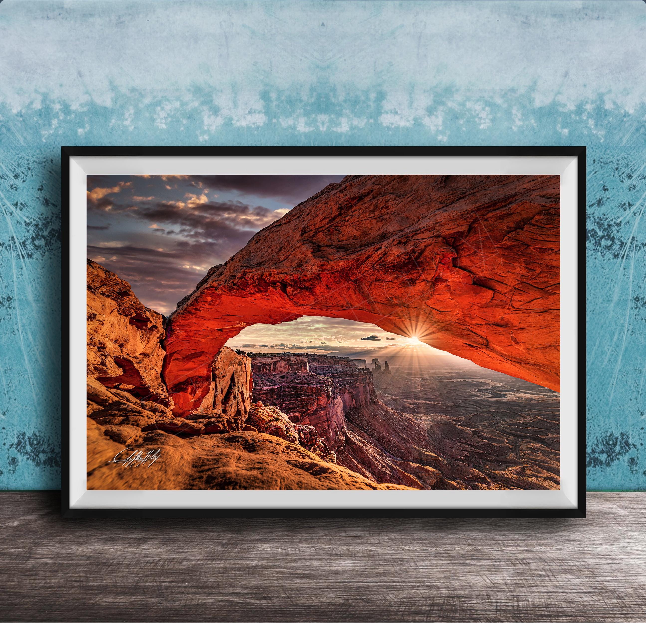 Add this vibrant sunrise nature print to your collection and bring a breathtaking piece of Canyonlands National Park into your home.