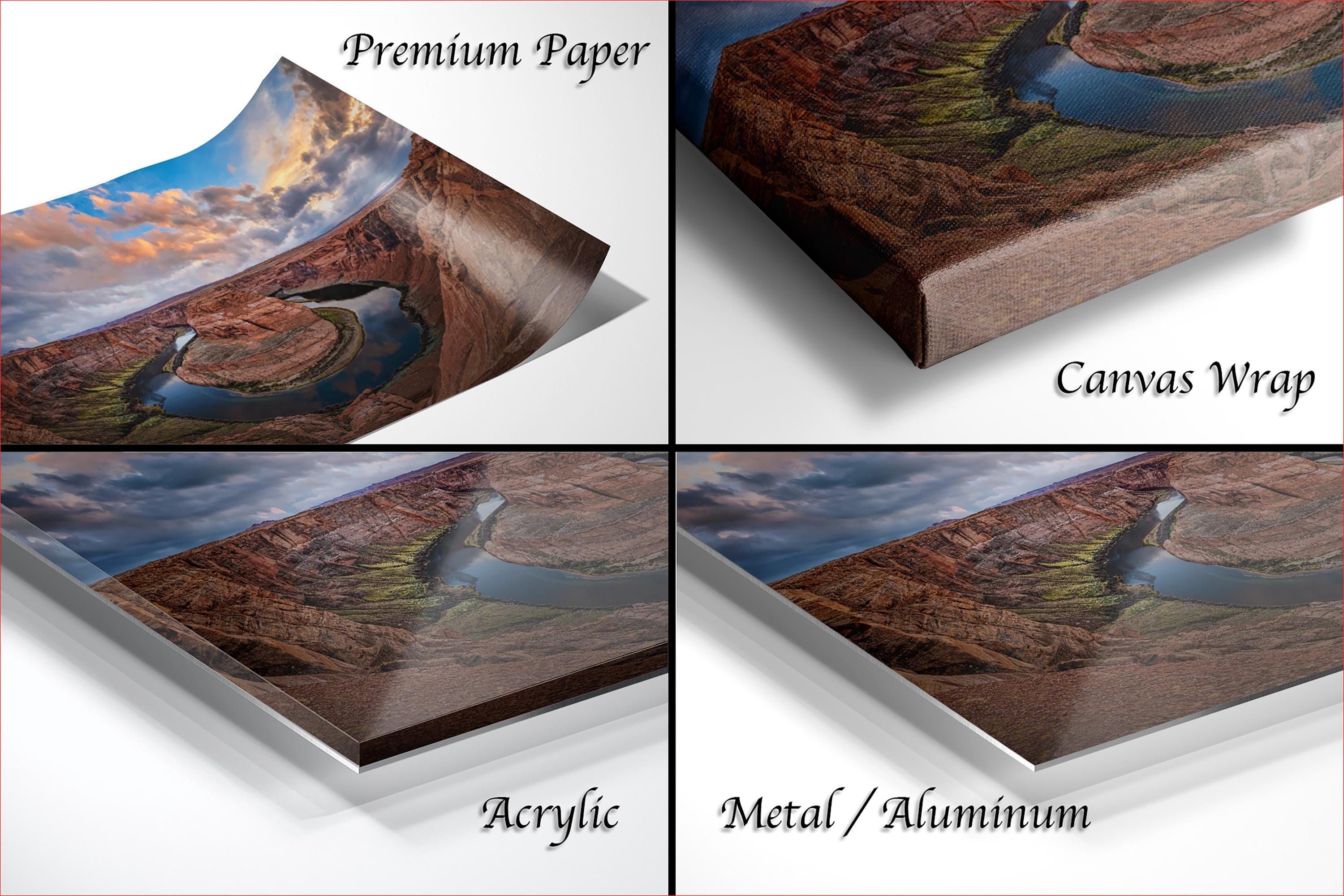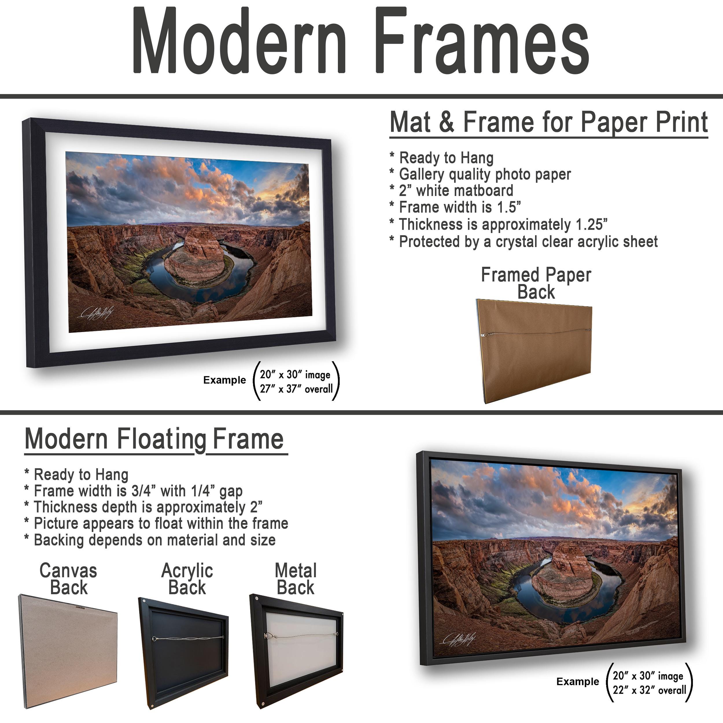 • Made-to-order with care, each piece is a unique creation featuring the artist's signature in the bottom corner for authenticity. • Available as framed paper prints, acrylics, aluminum/metal prints with a 2" white mat border, or canvas prints that are flush mounted without a mat. • Dimensions and customization options available upon request to perfectly fit your space. • Ideal as a sunrise sunset gift or natural wonder decor for any outdoor wall decor enthusiast.