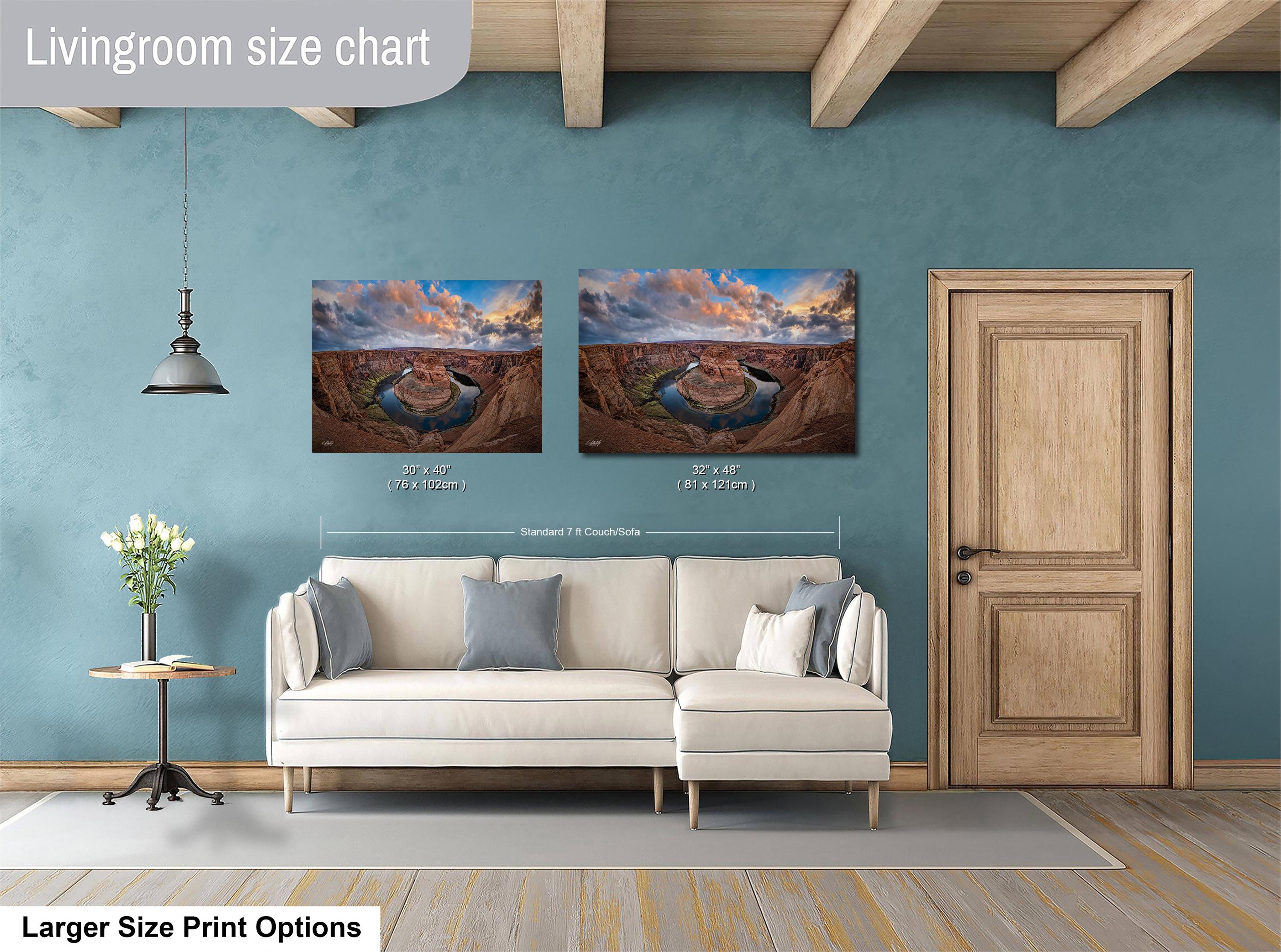 Bring the magic of Horseshoe Bend’s colorful landscape and warm glow artwork into your living space with this exceptional piece that captures the essence of Arizona’s scenic beauty.