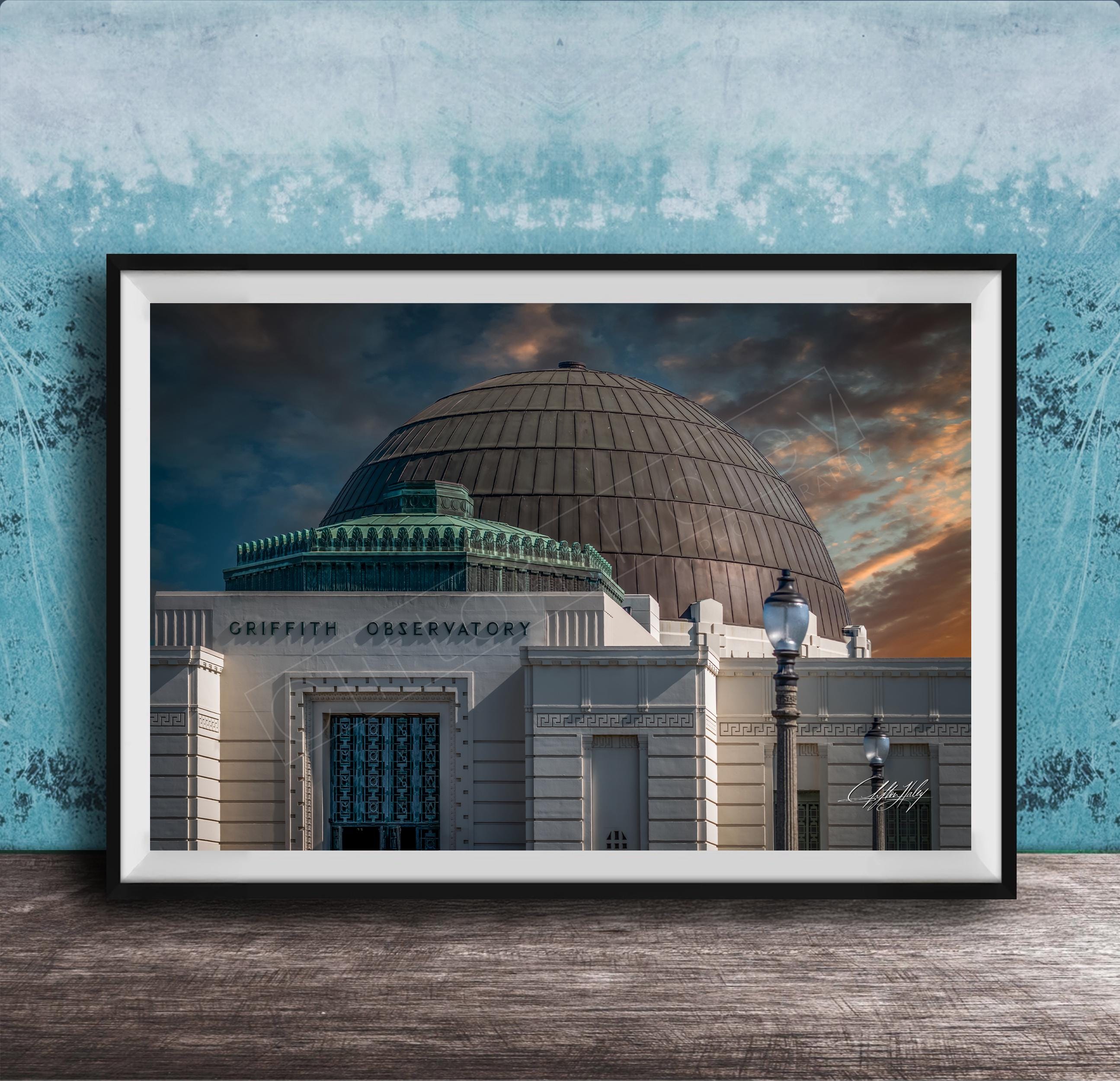 This Los Angeles print featuring the Griffith Observatory is the perfect Los Angeles wall art and Griffith wall art for your home, capturing a stunning sunset over the city.