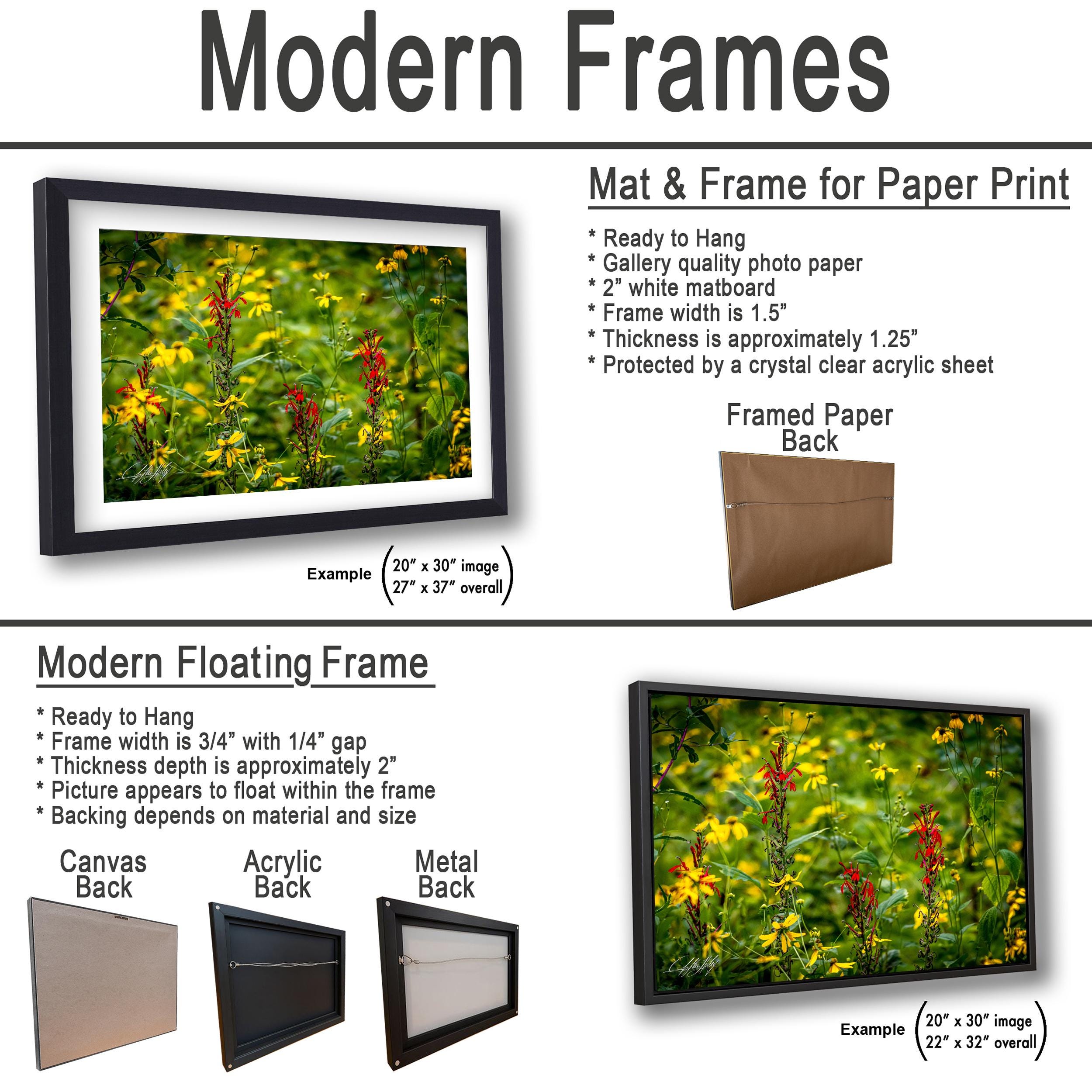 3.1 Framed paper prints, acrylics, and metal prints include a 2" white mat border.