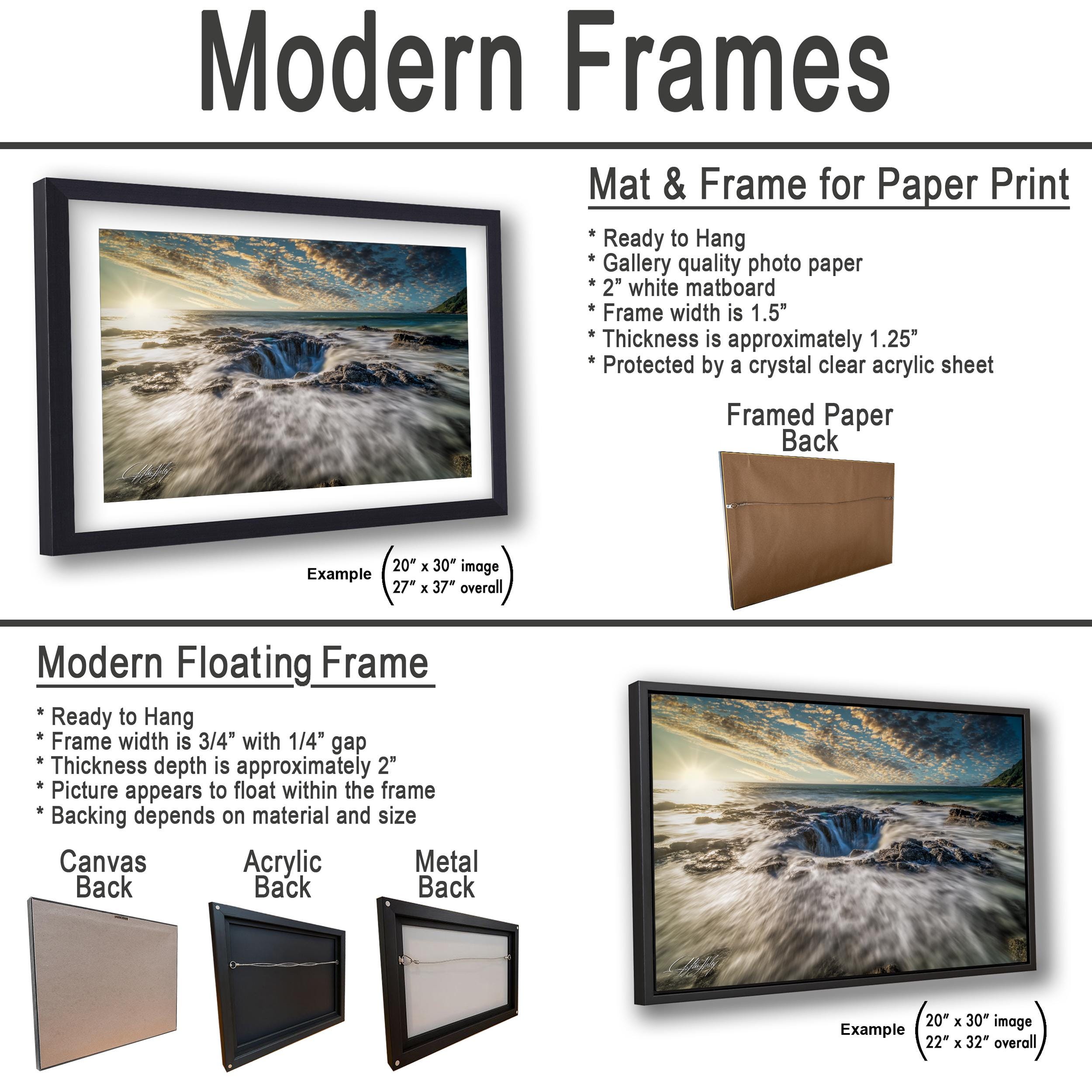 - Made-to-order with meticulous care and artist’s signature for authenticity - Available in framed paper prints with a 2" white mat border, acrylics, aluminum/metal prints, or flush-mounted canvas - High-quality materials ensure vibrant color and long-lasting durability - Customizable dimensions upon request to perfectly fit your space - Ideal gift for nature photography enthusiasts and coastal scenery admirers