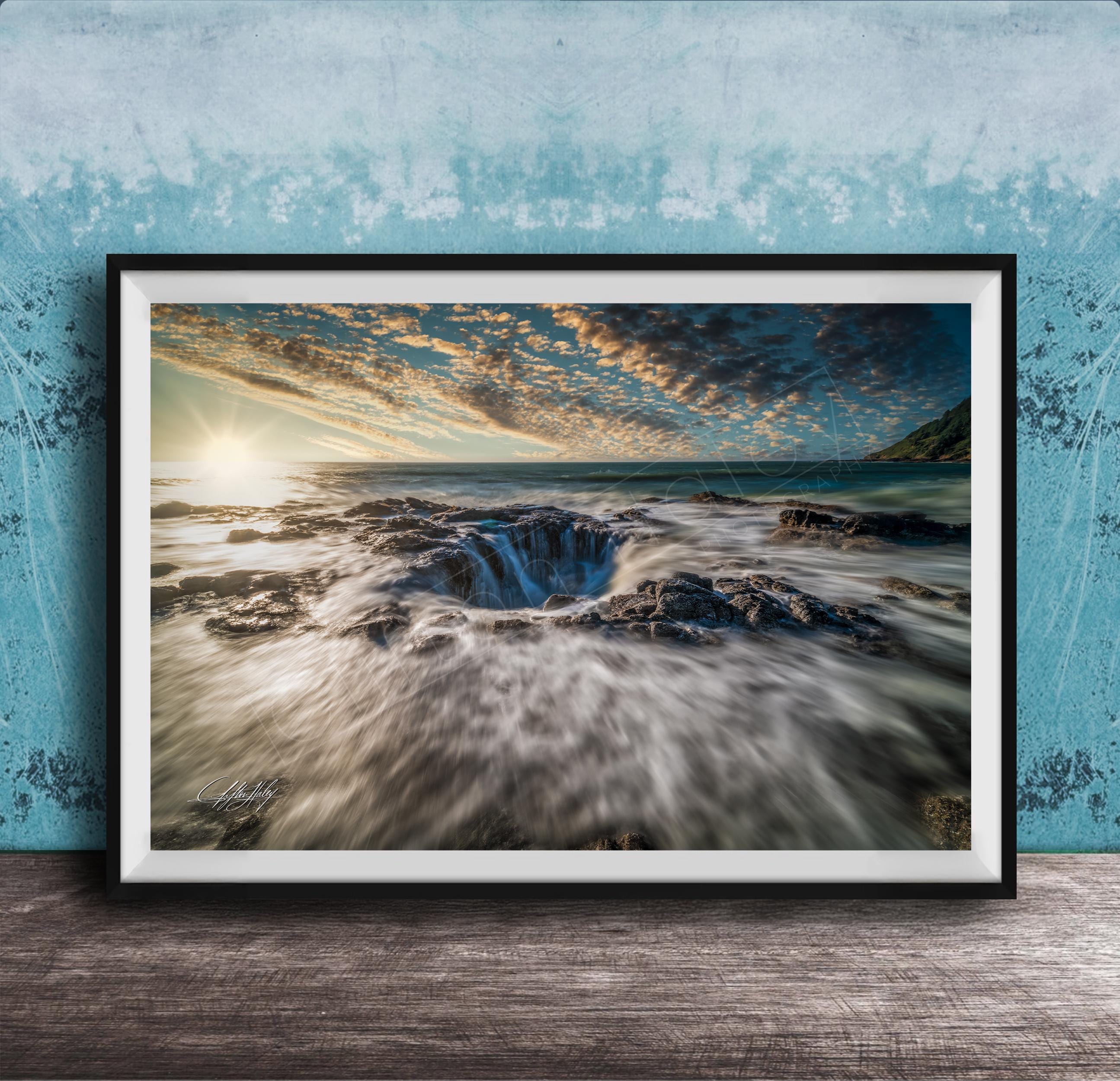 Experience the captivating beauty of the Oregon coast with this stunning Thor's Well photograph, where dramatic ocean waves meet a rugged coastline at sunrise or sunset. Inspired by the natural wonder near Cape Perpetua and Yachats, this coastal nature print brings the serene yet powerful ambiance of the sea right into your home. Perfect for lovers of travel landscape art and wildlife wall decor, each piece invites you to immerse yourself in nature’s breathtaking moments.