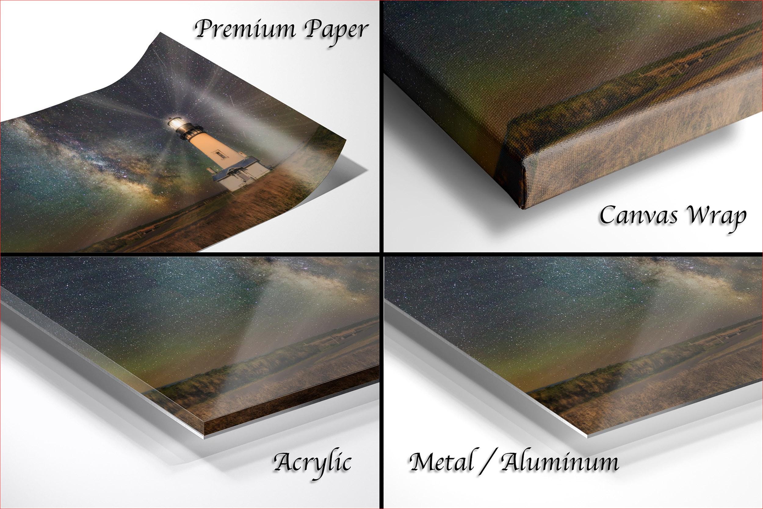 3.1) Only framed paper prints, acrylics and aluminum/metal prints will have a 2" white mat border. 3.2) Canvas prints will be a flush mounted (no mat border) to the frame.