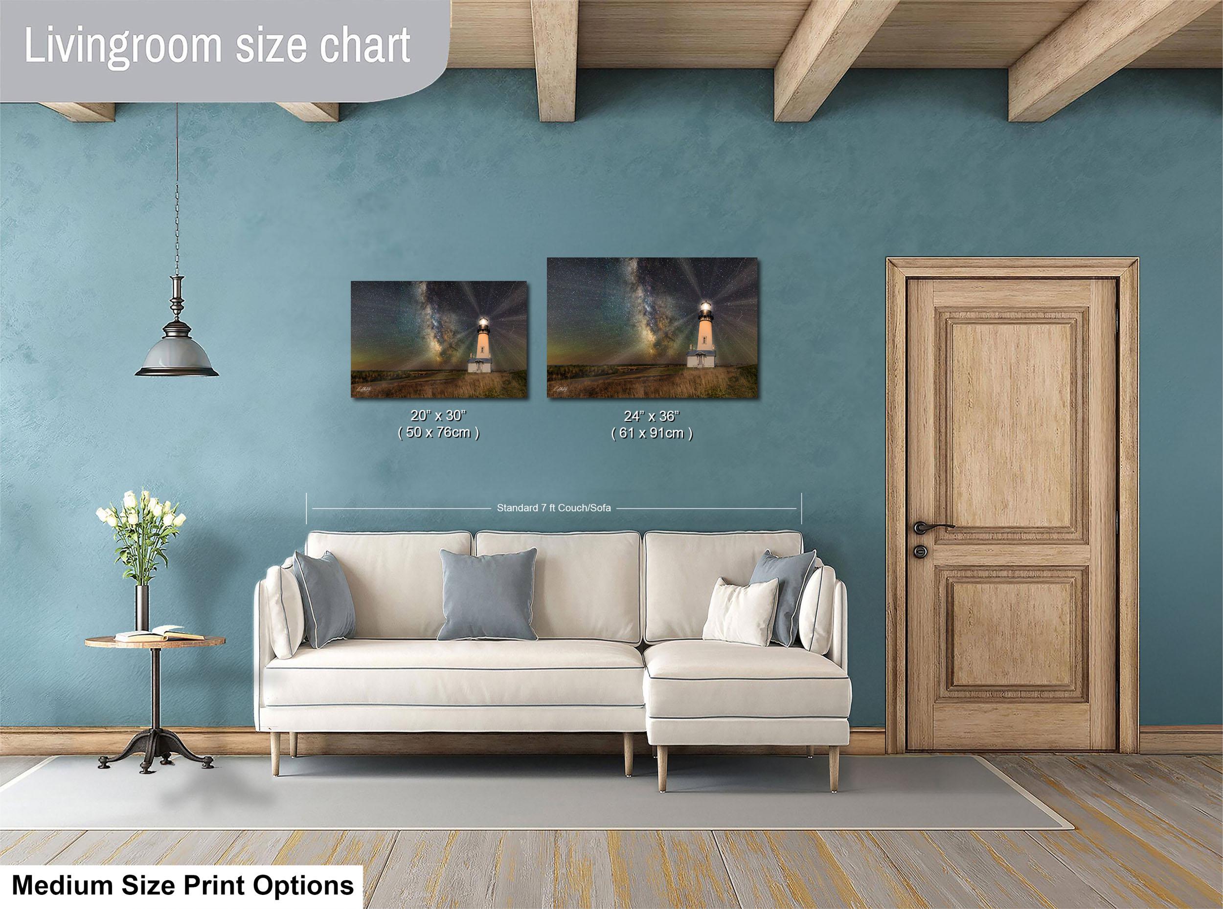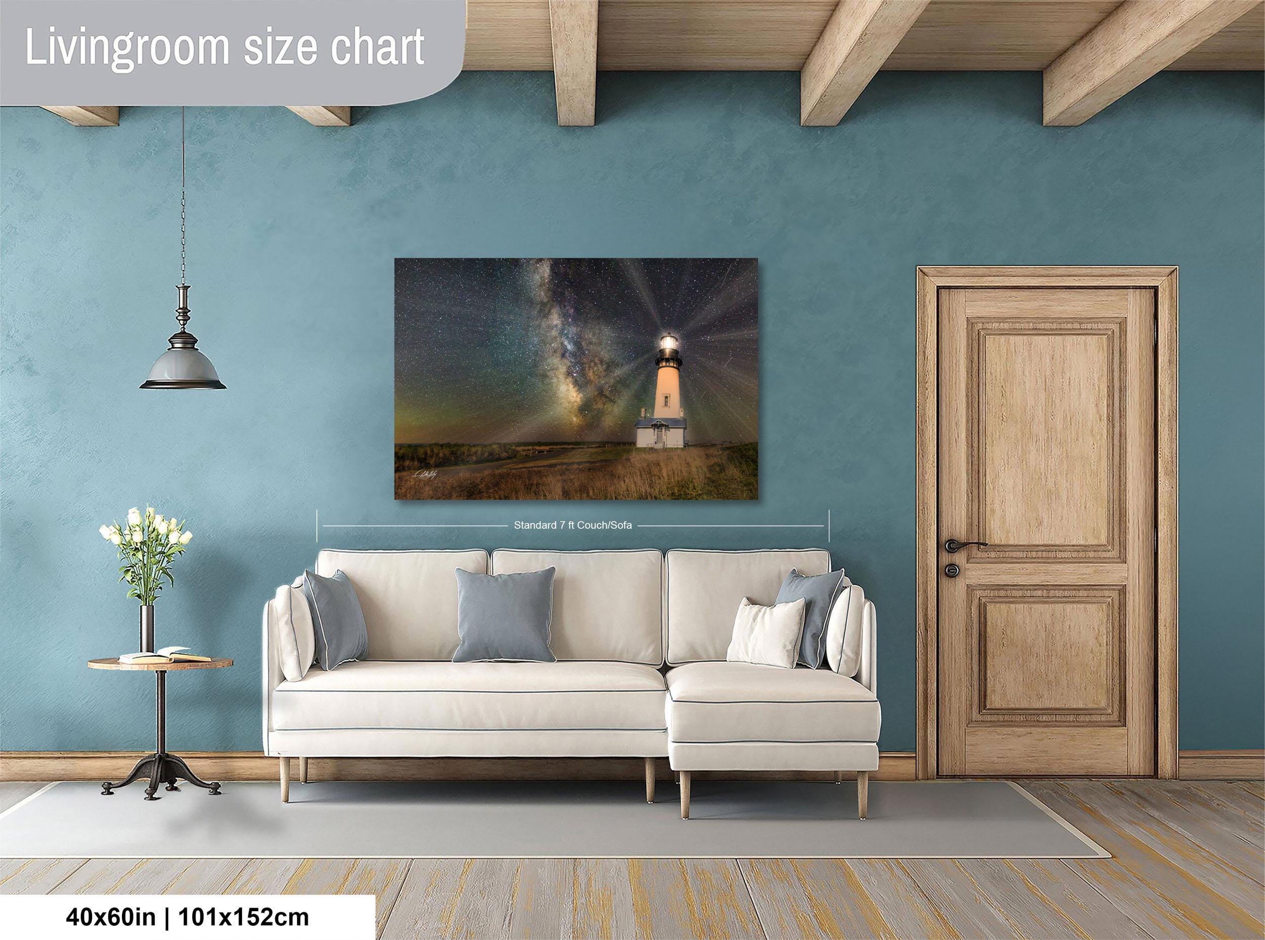 Bring home a timeless reminder of Oregon's coastal beauty and celestial wonders with this exquisite lighthouse view art.