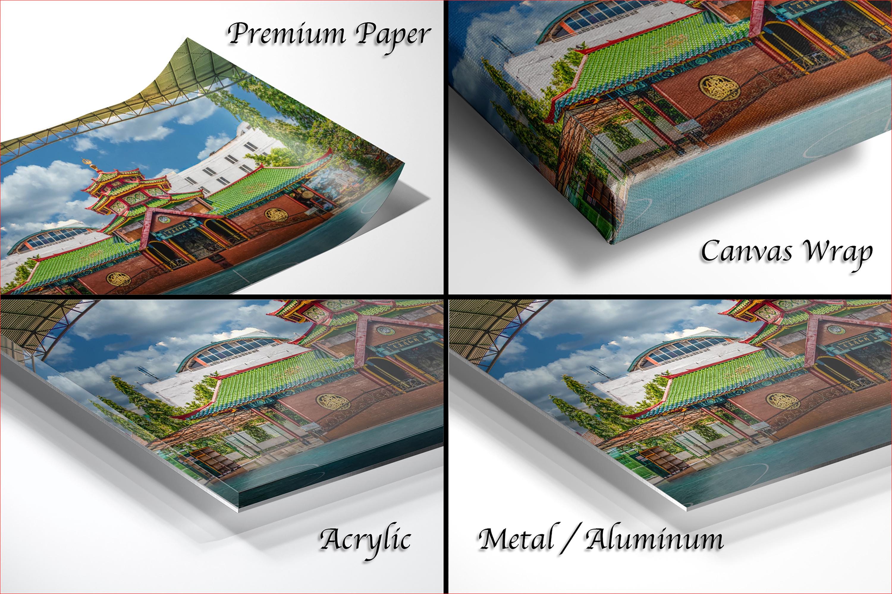 3.1) Only framed paper prints, acrylics and aluminum/metal prints will have a 2" white mat border. 3.2) Canvas prints will be a flush mounted (no mat border) to the frame.
