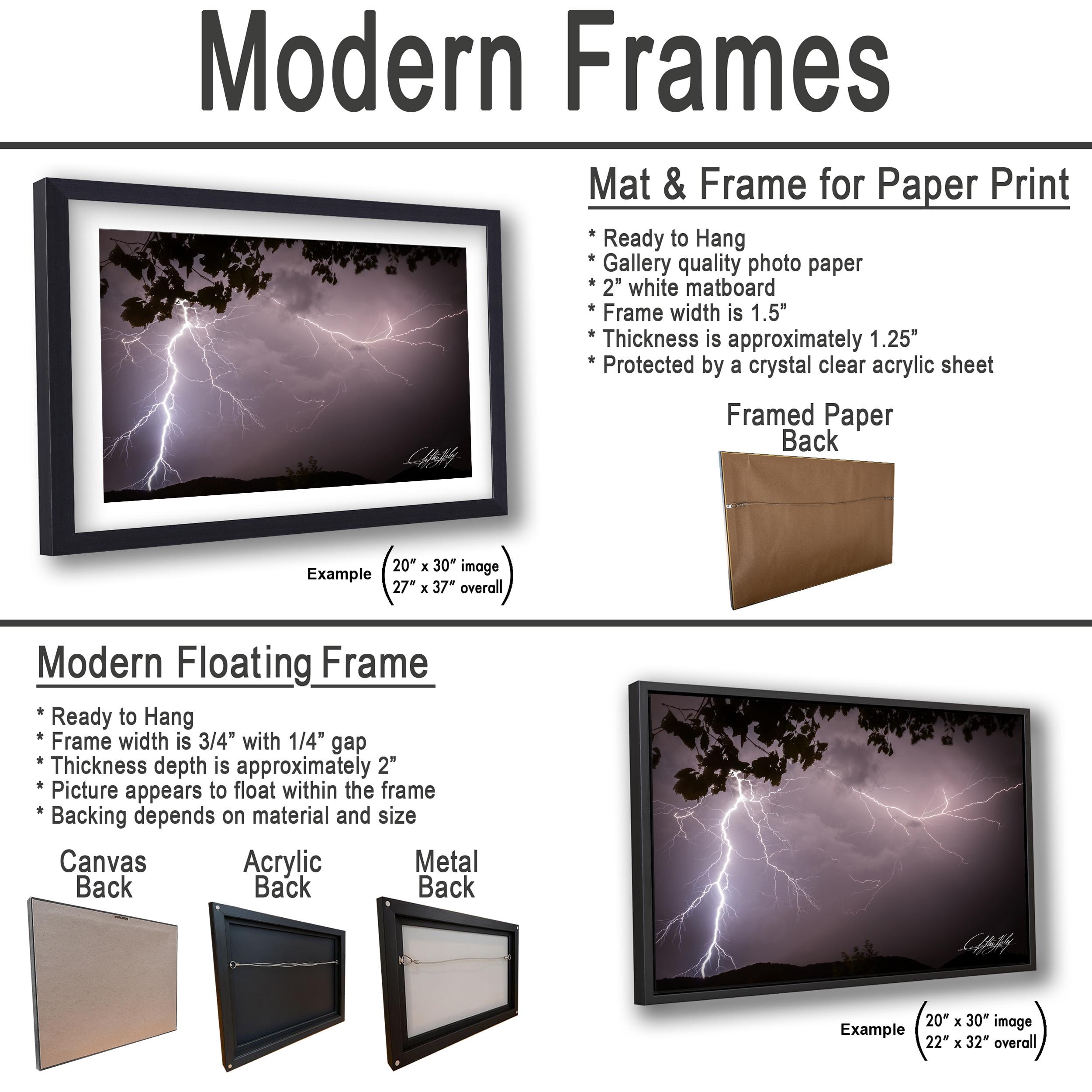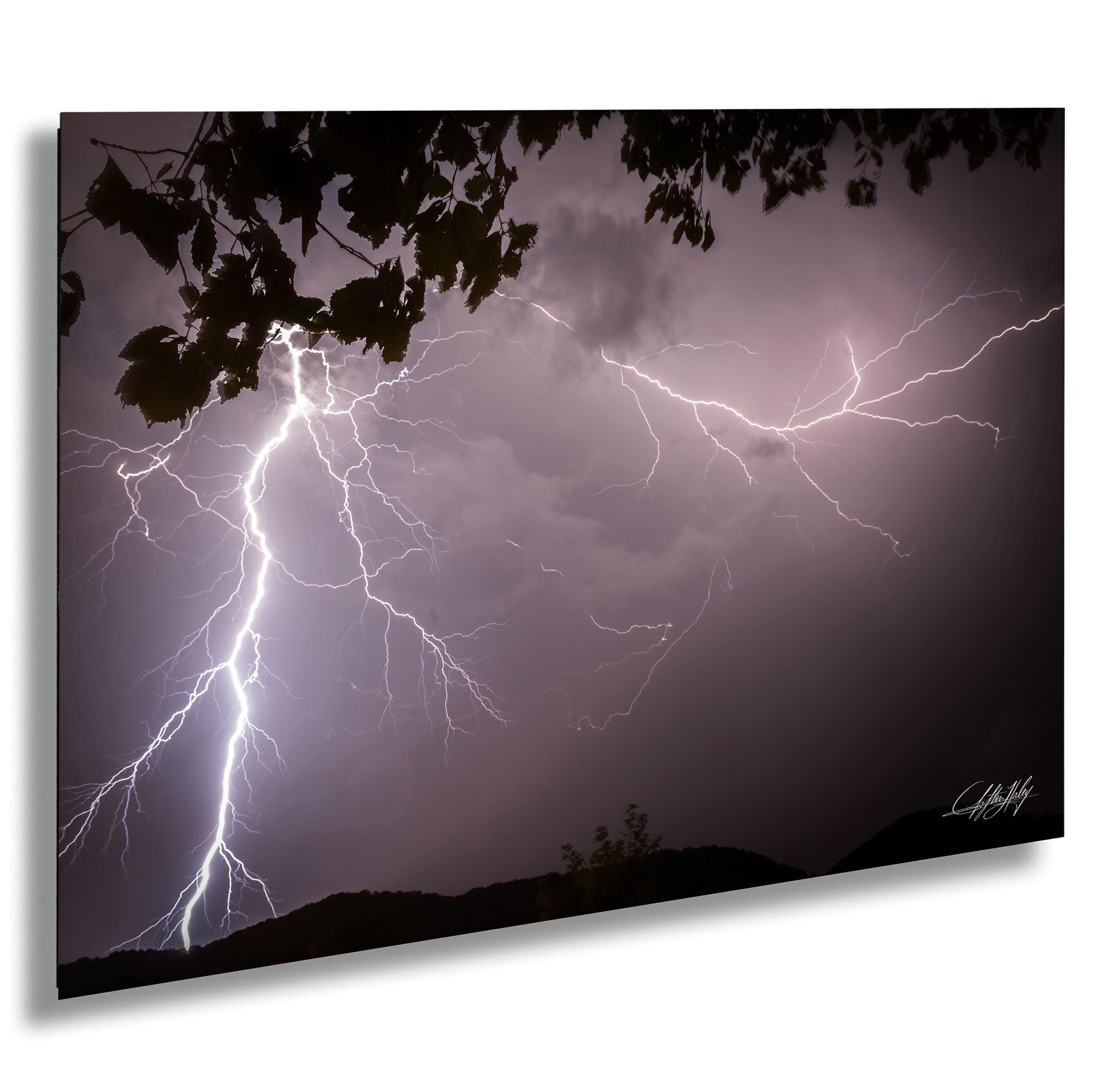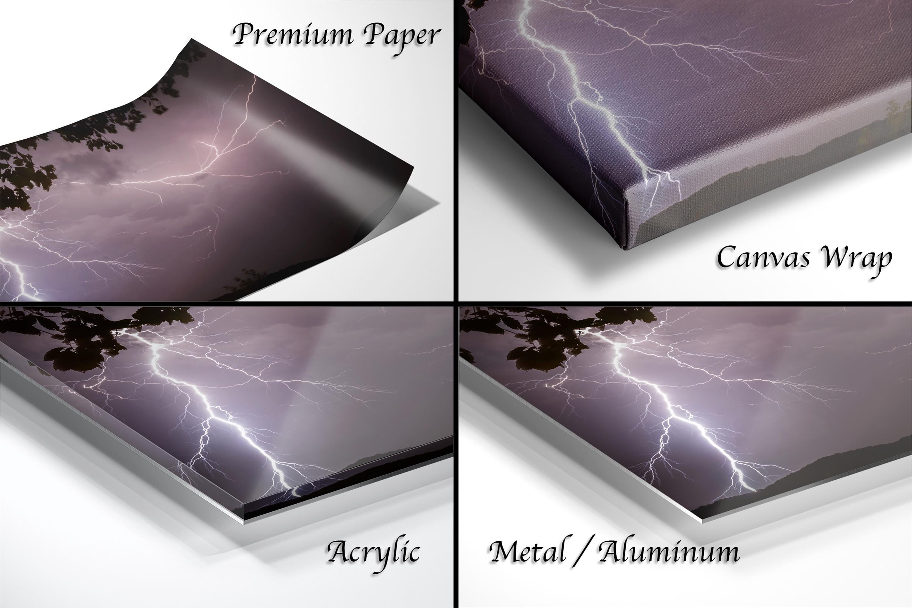 - Available as framed canvas art or paper prints with a 2" white mat border on acrylic and metal options - Each piece is made-to-order and signed by the artist in the bottom corner for authenticity - Dimensions and material options provide versatile display choices to suit your decor style - Captures the intensity of an East Tennessee storm with stunning clarity and emotion