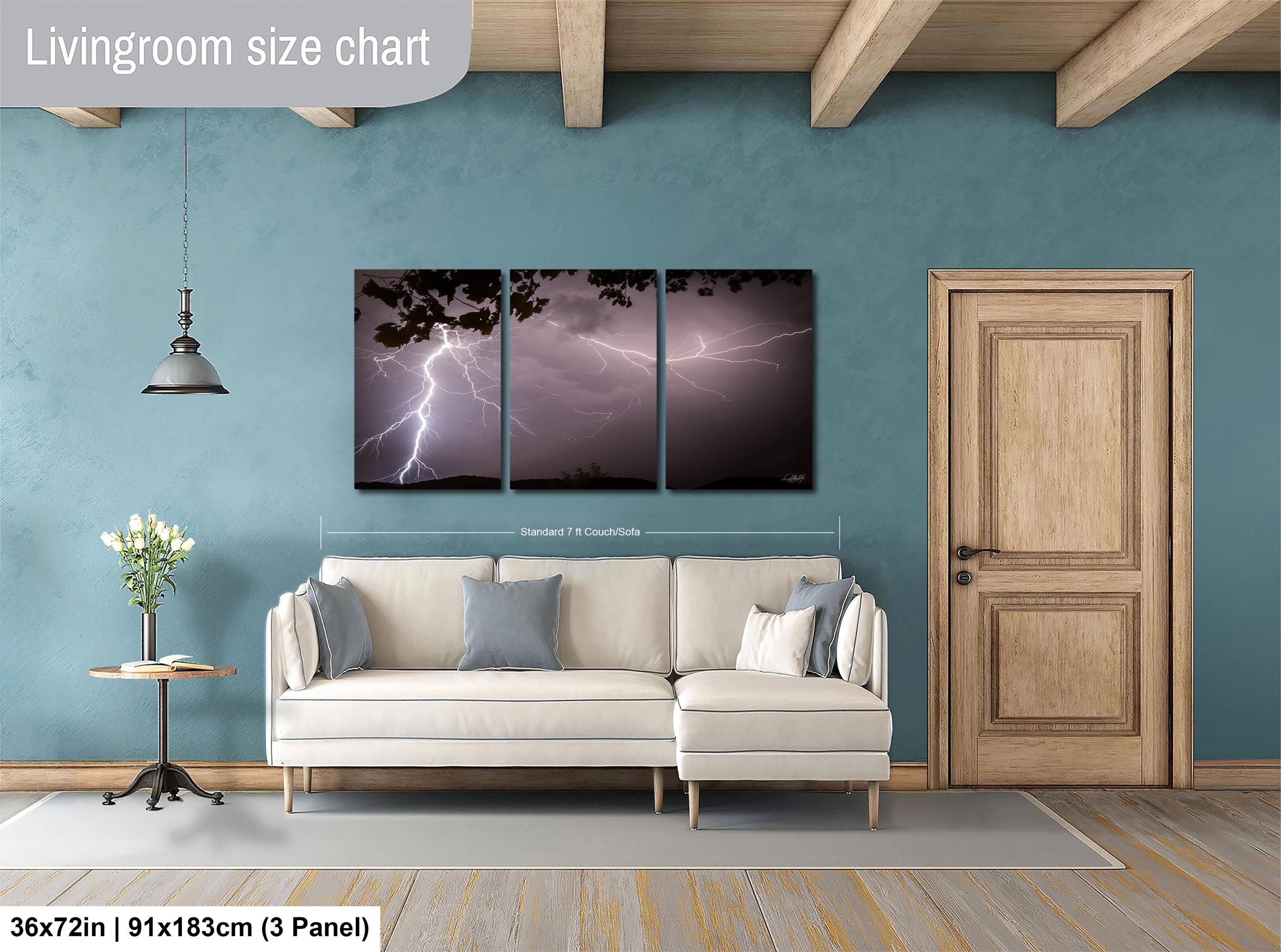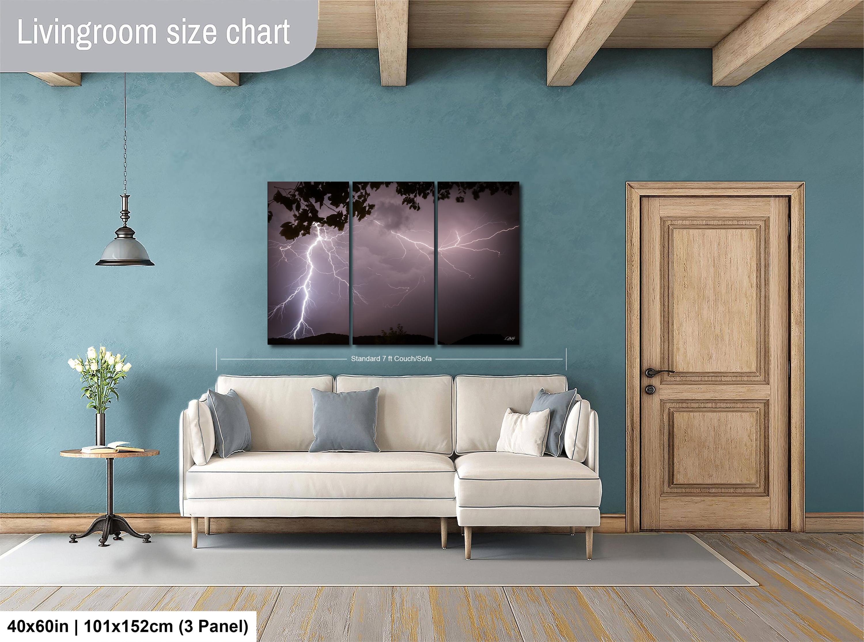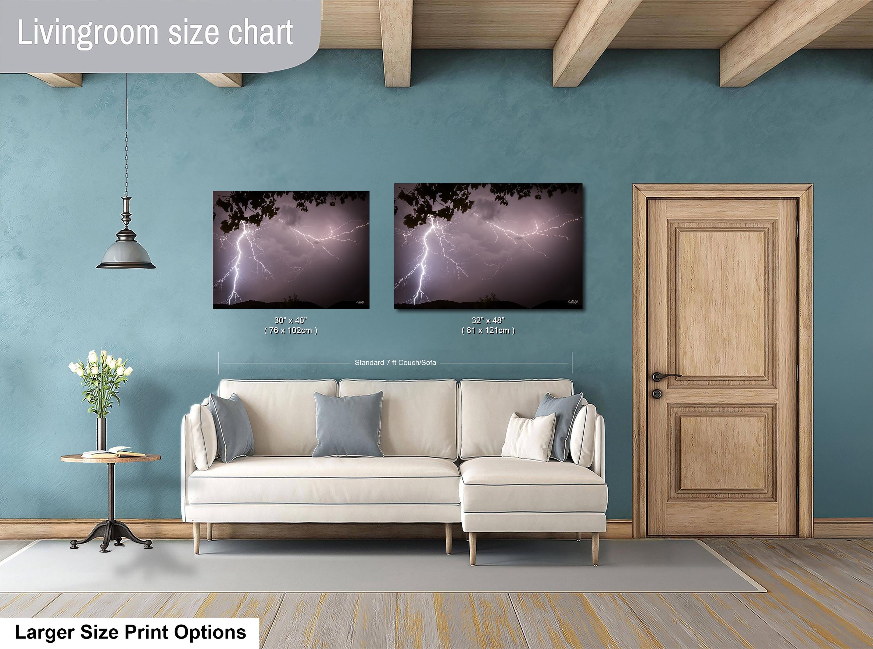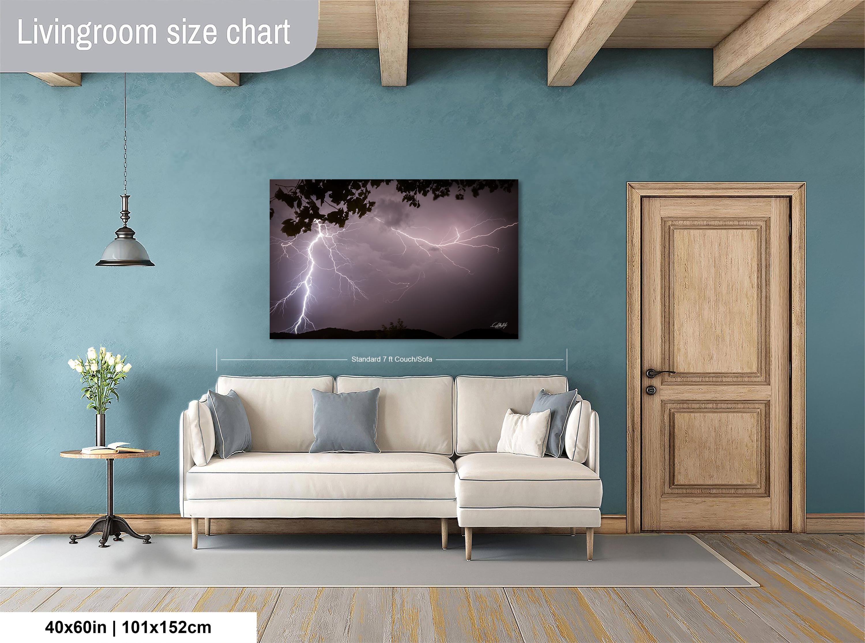 - Available as framed canvas art or paper prints with a 2" white mat border on acrylic and metal options - Each piece is made-to-order and signed by the artist in the bottom corner for authenticity - Dimensions and material options provide versatile display choices to suit your decor style - Captures the intensity of an East Tennessee storm with stunning clarity and emotion