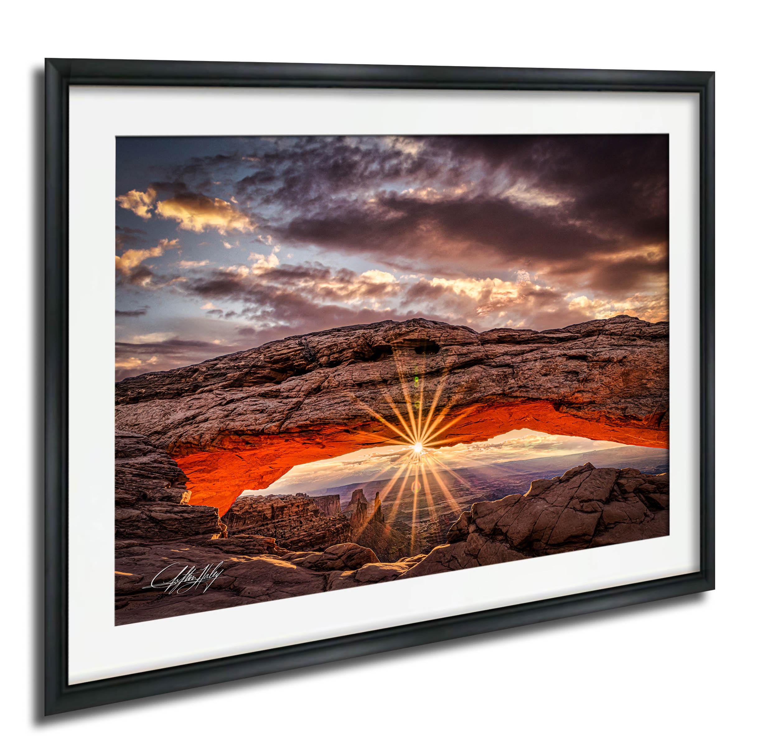 Experience the breathtaking beauty of Mesa Arch at sunrise with this stunning canvas print, capturing the warm glow and intricate details of Canyonlands National Park. This scenic landscape art brings a touch of Moab decor to your home, perfect for nature lovers and fans of western desert scenes.