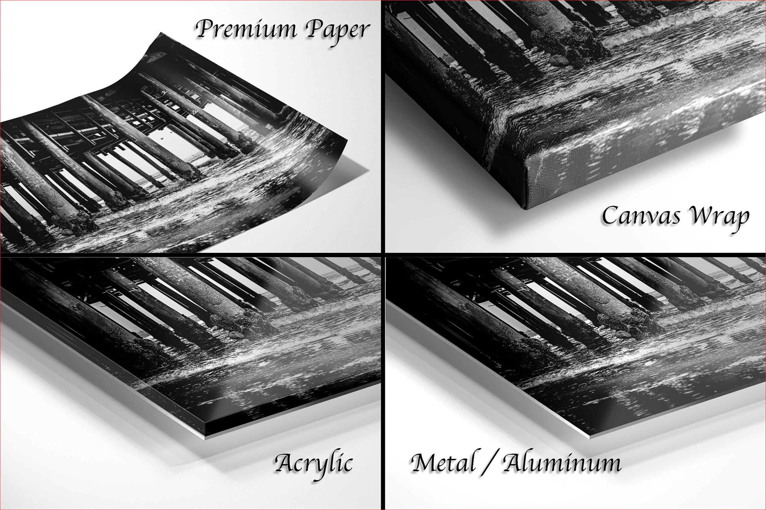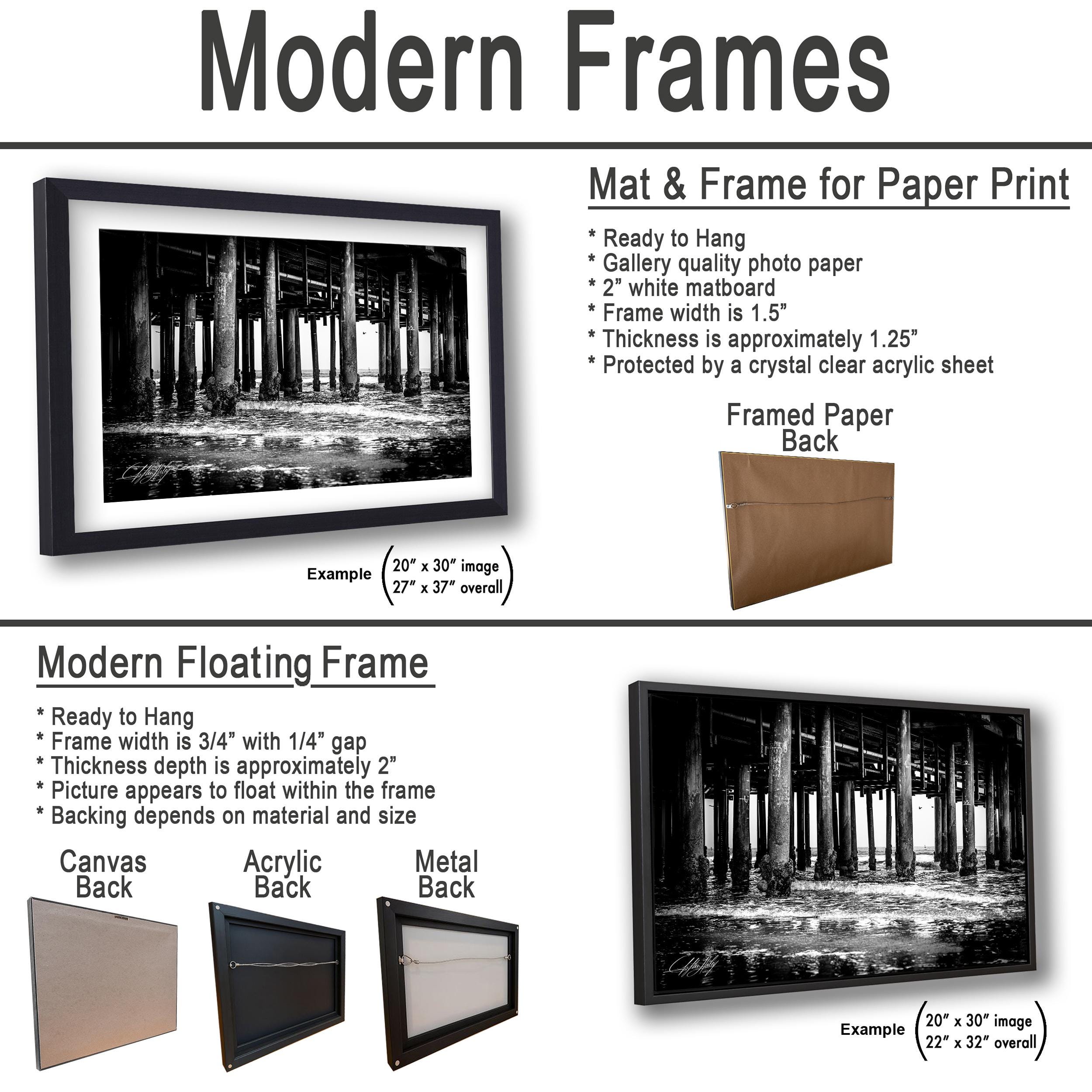 3.1) Only framed paper prints, acrylics and aluminum/metal prints will have a 2" white mat border. 3.2) Canvas prints will be a flush mounted (no mat border) to the frame.