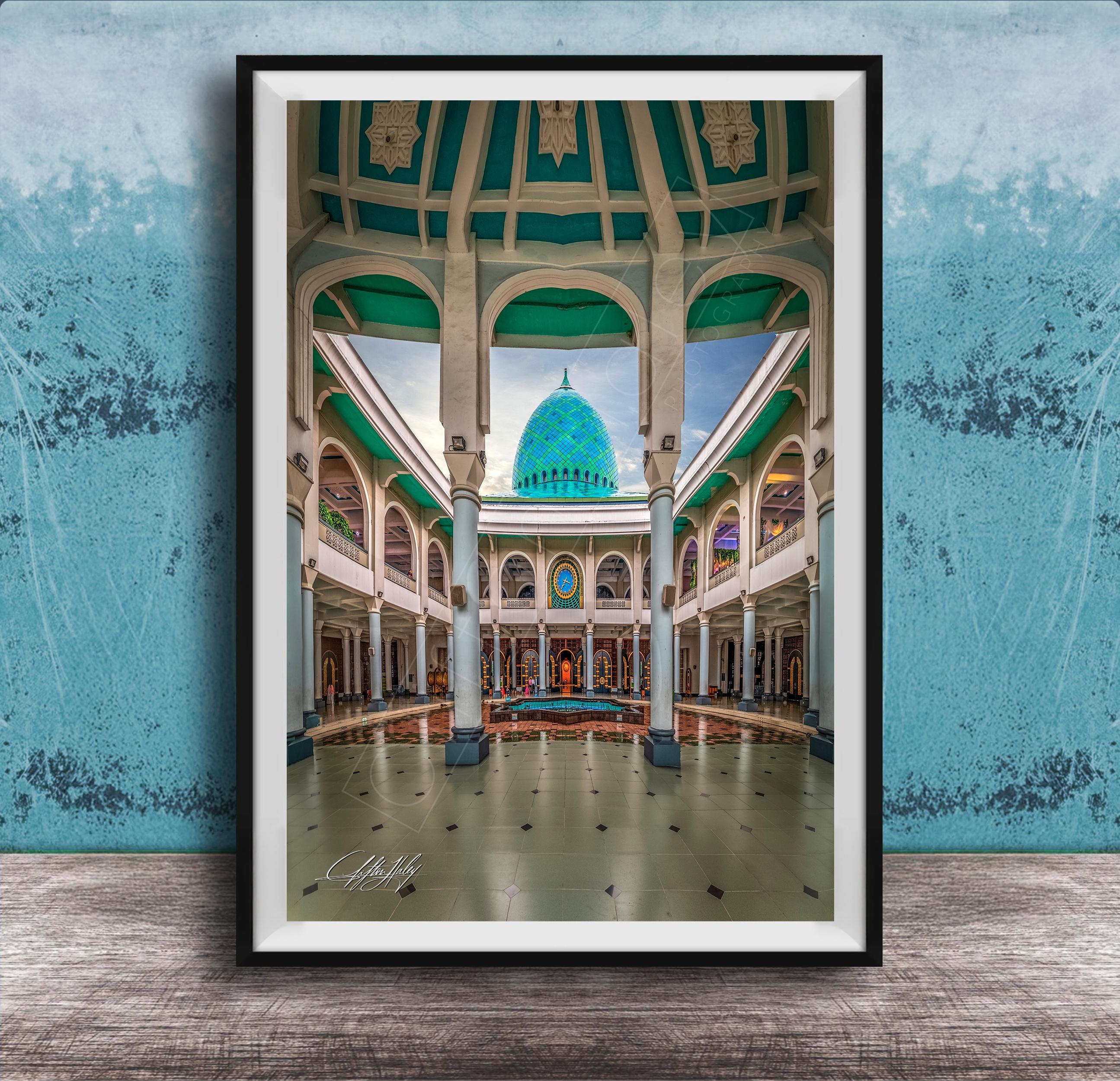From the bustling streets of Surabaya to your home, this Al-Akbar Mosque print captures the golden light that bathes one of Indonesia’s most iconic landmarks. Inspired by the intricate beauty of Islamic architecture, this framed mosque print brings a serene and spiritual ambiance to any space. Perfect as a unique Muslim gift or Ramadan decoration, it celebrates faith and artistry in equal measure.