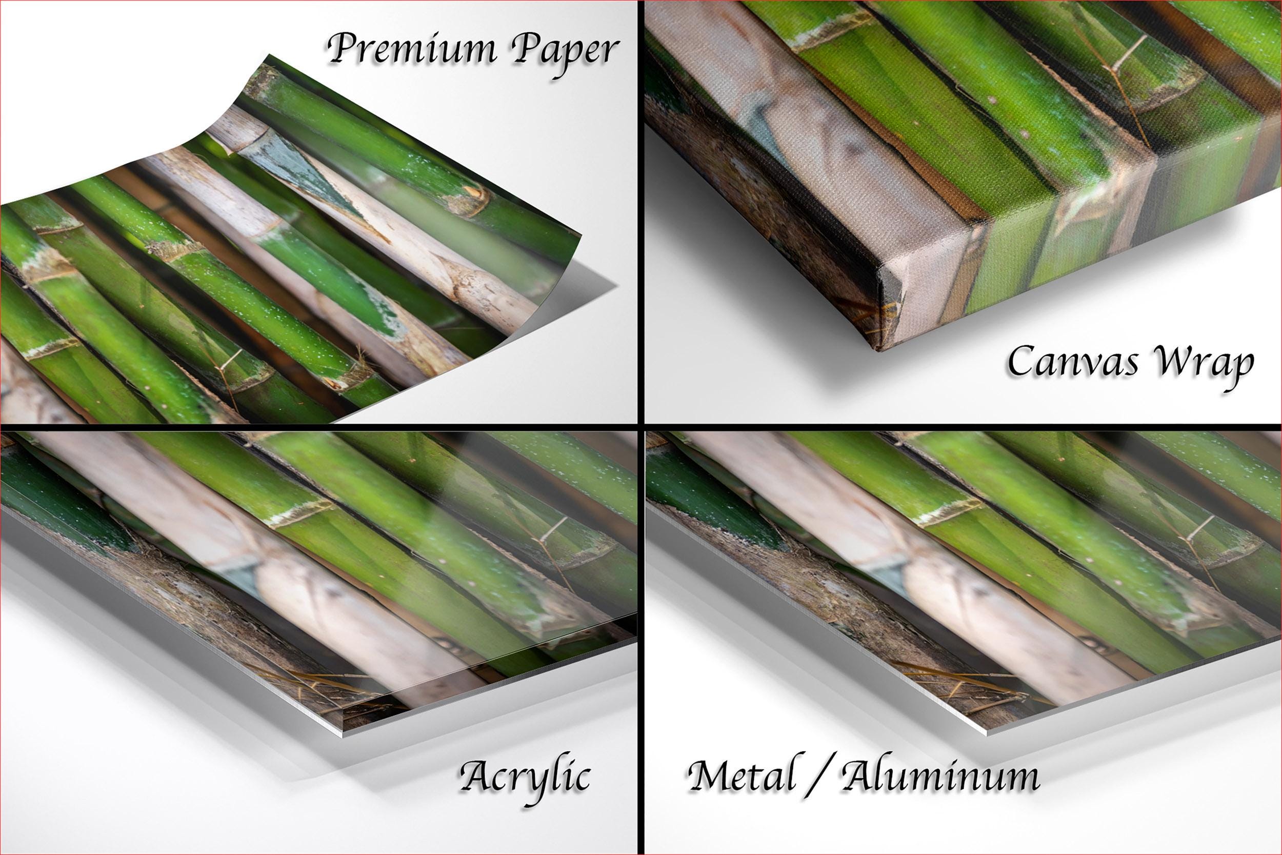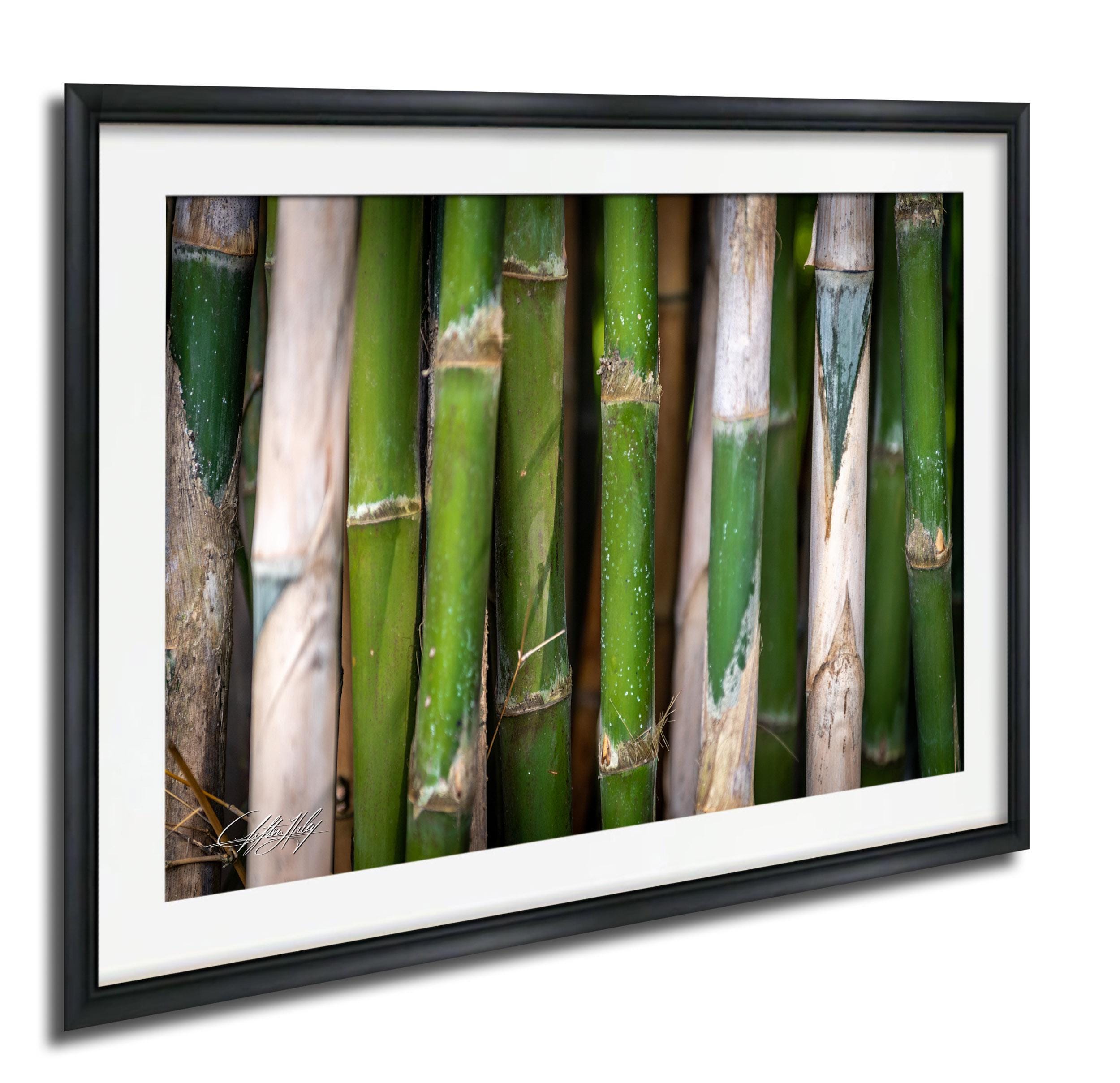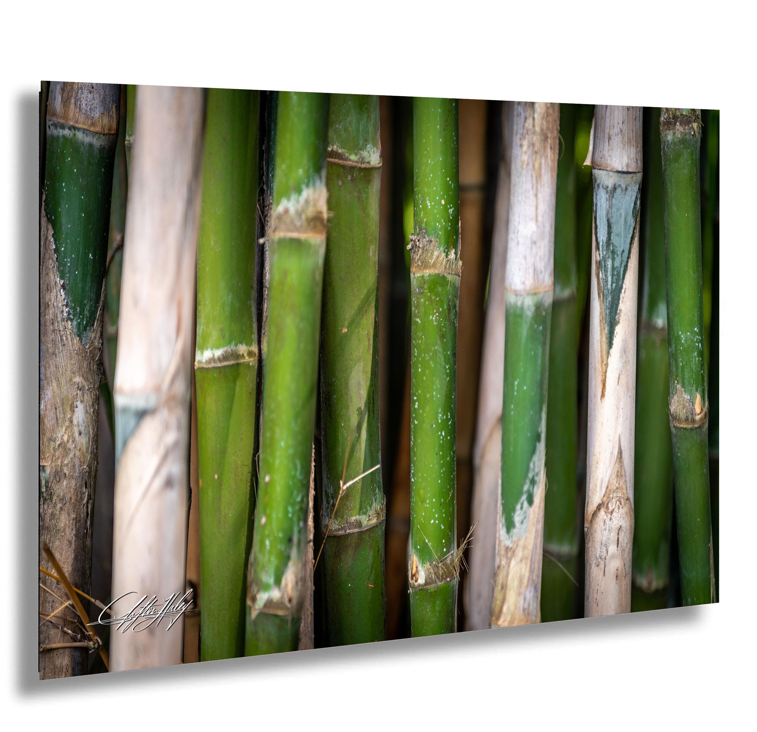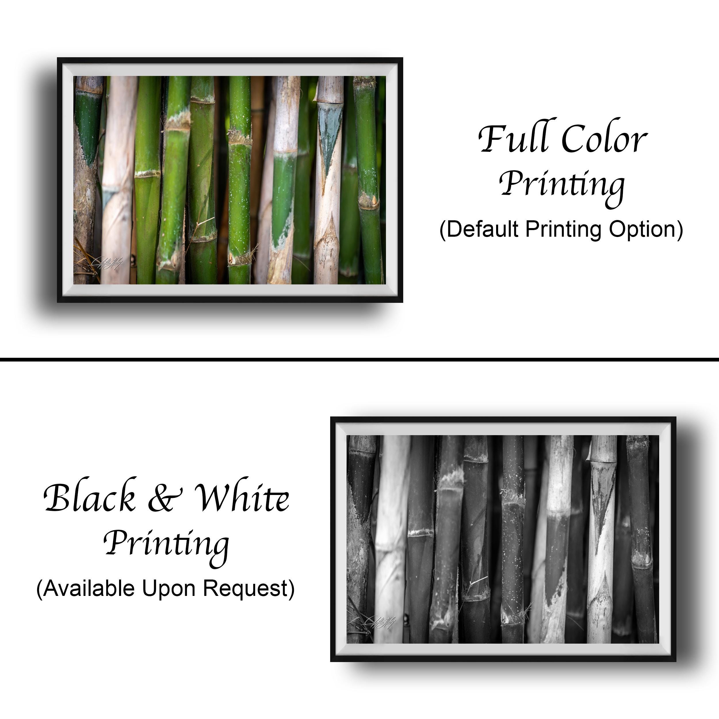 Experience the soothing presence of nature with this fine art print featuring vibrant bamboo stalks gently swaying under soft natural light. Each custom piece is made-to-order, ensuring a unique and personal touch for your eco-friendly art collection.