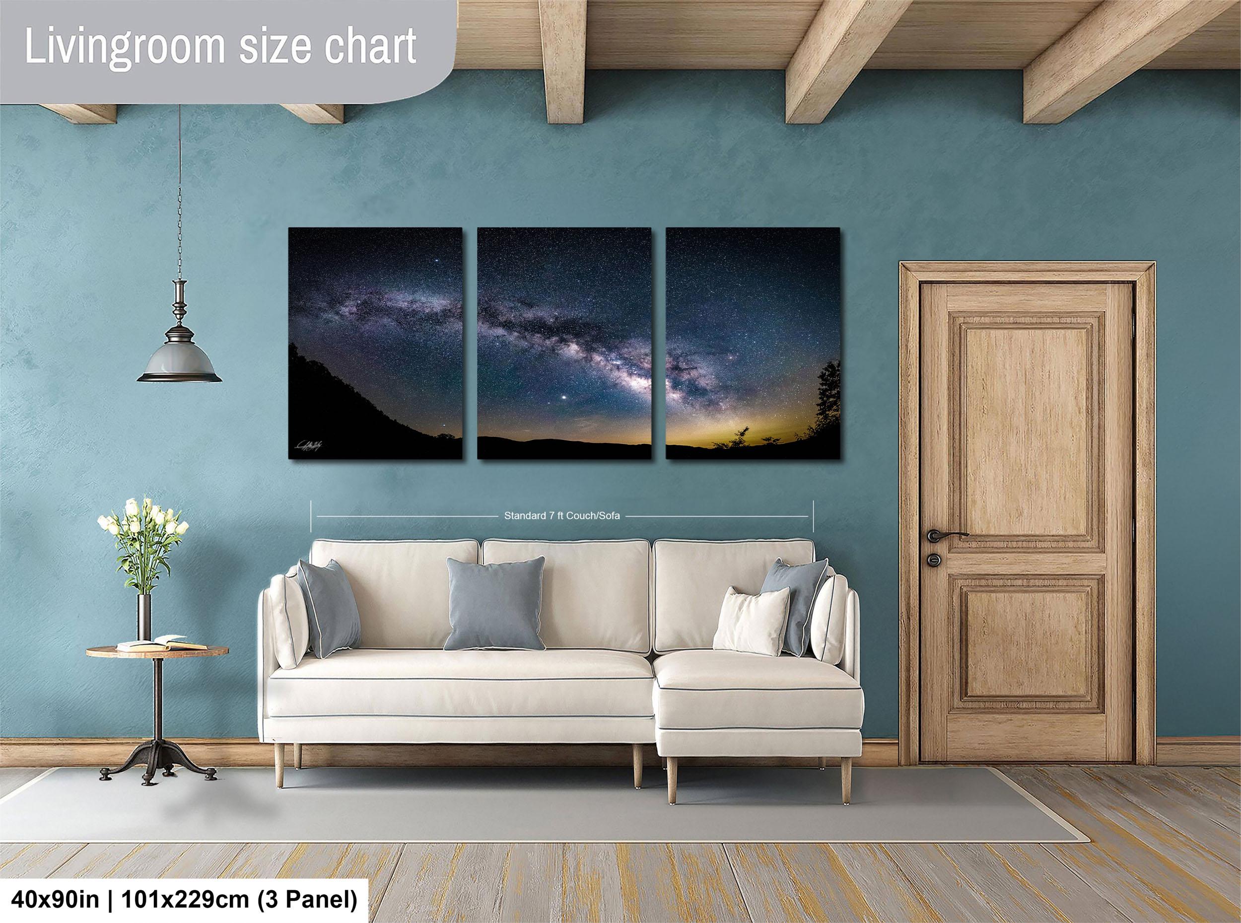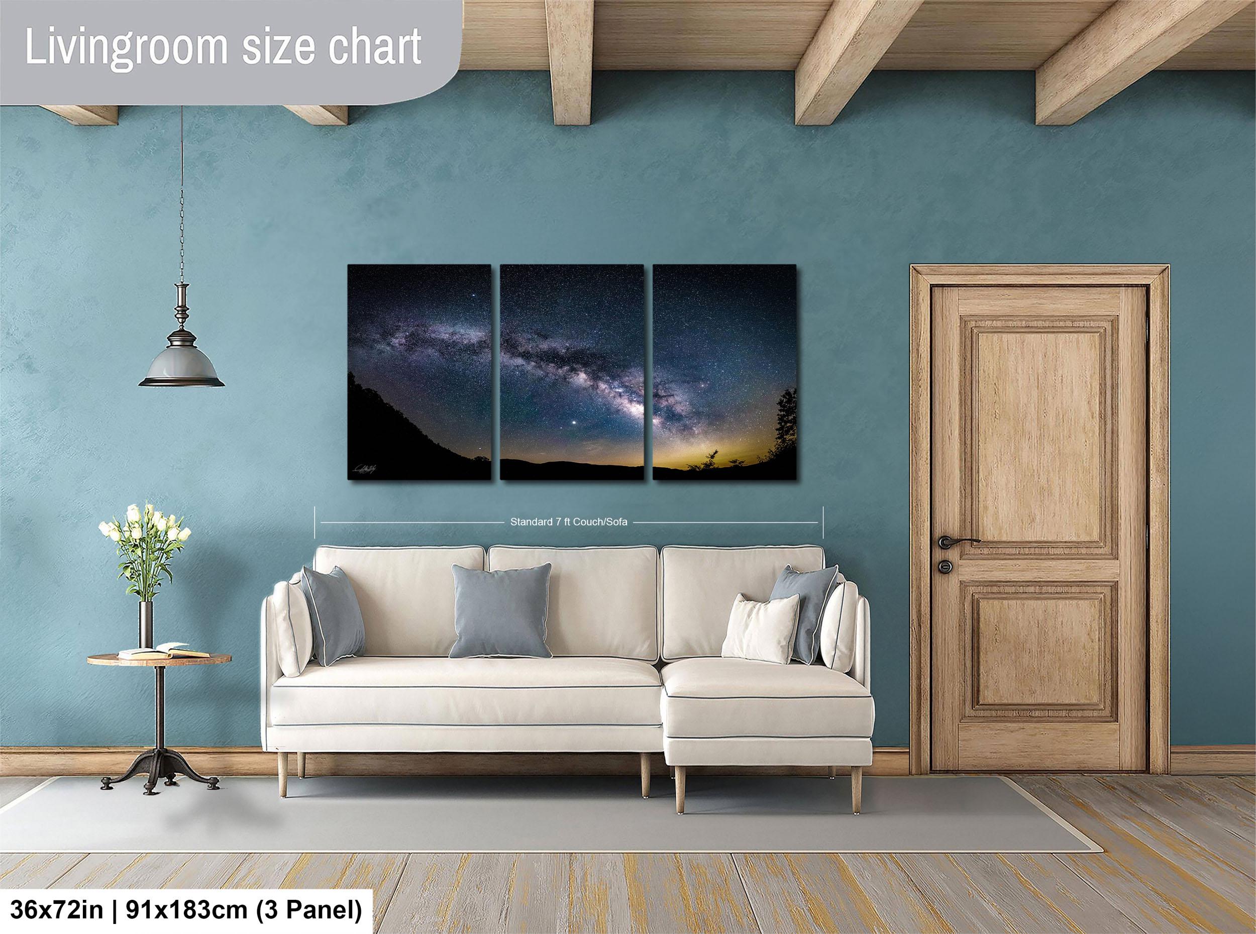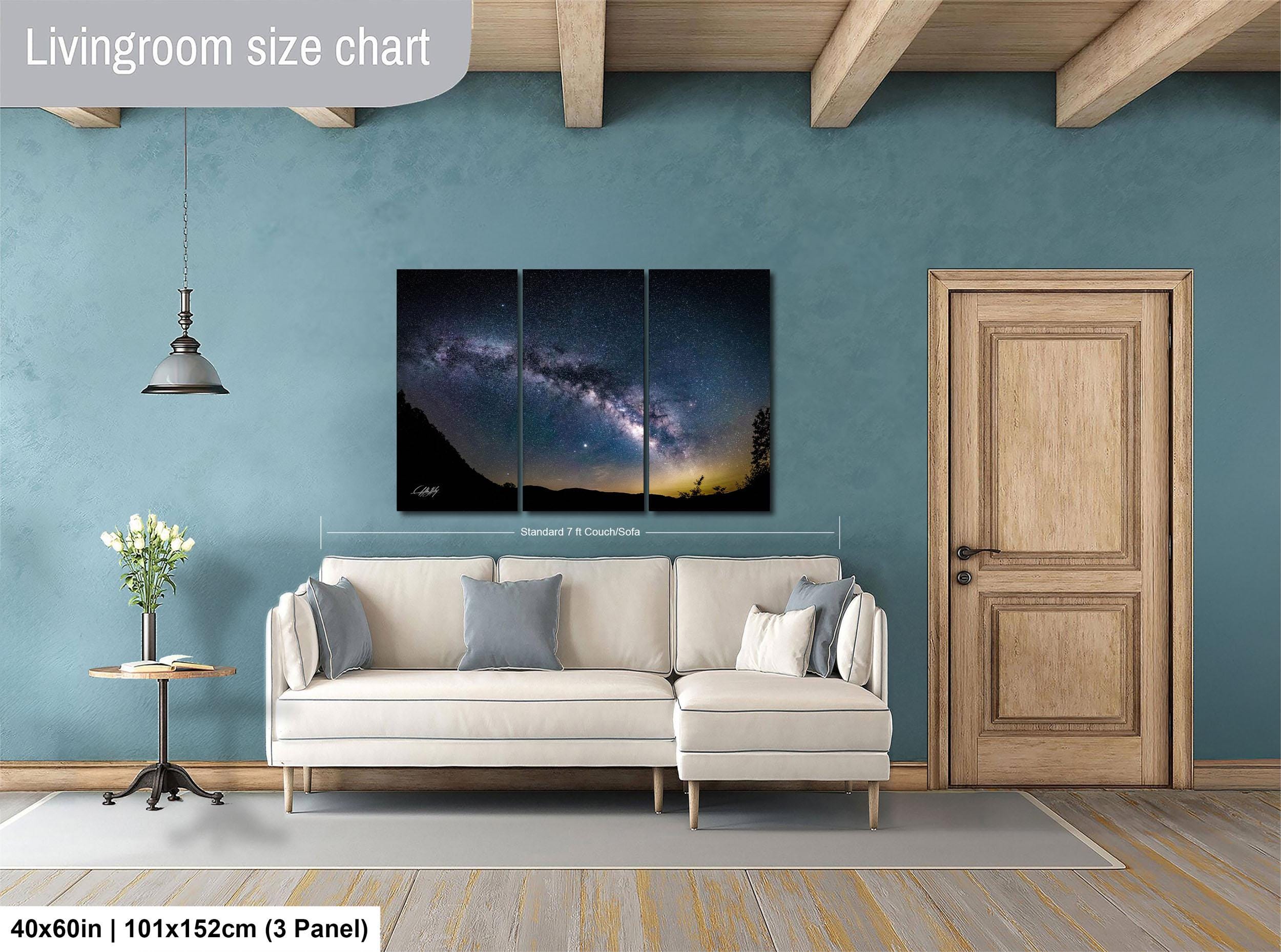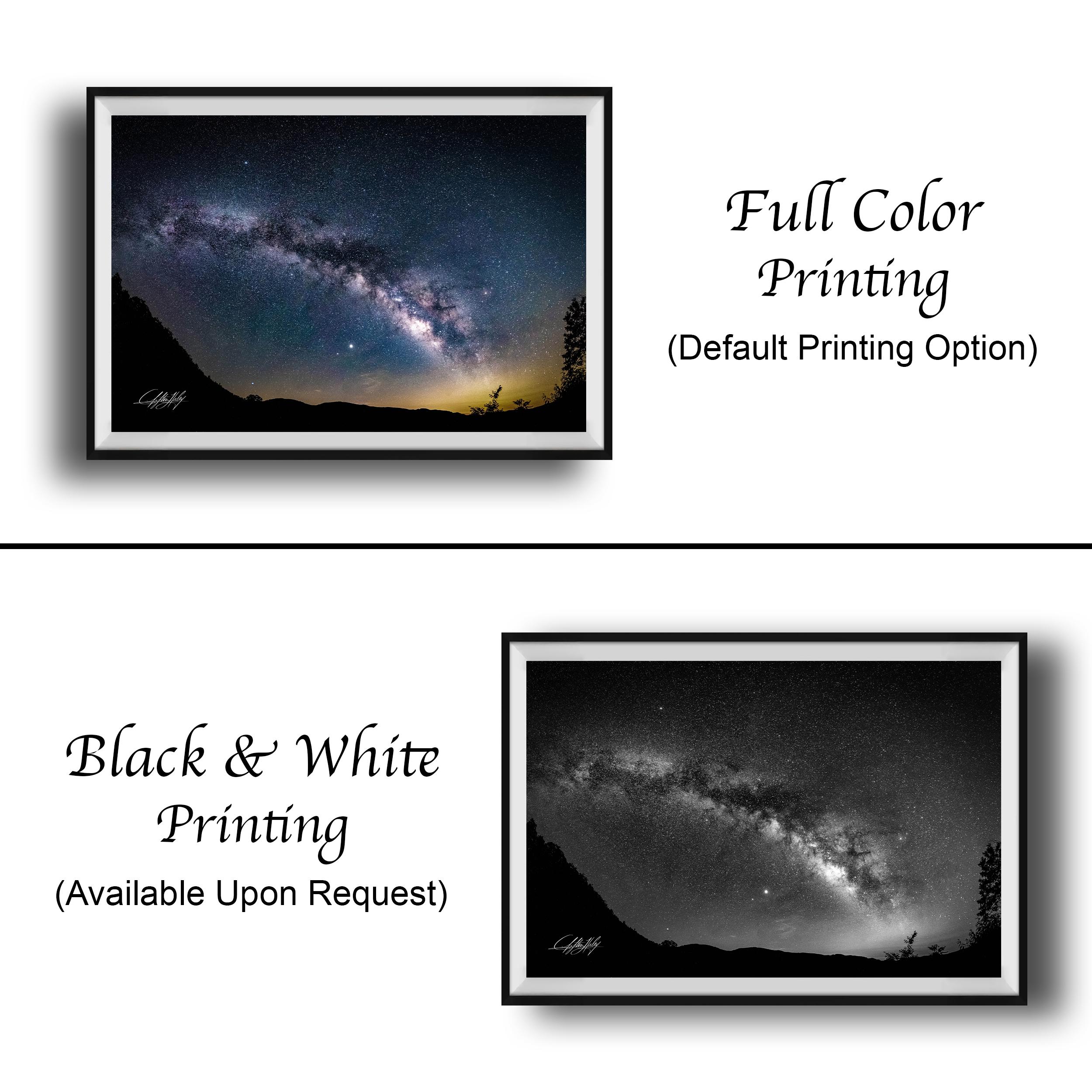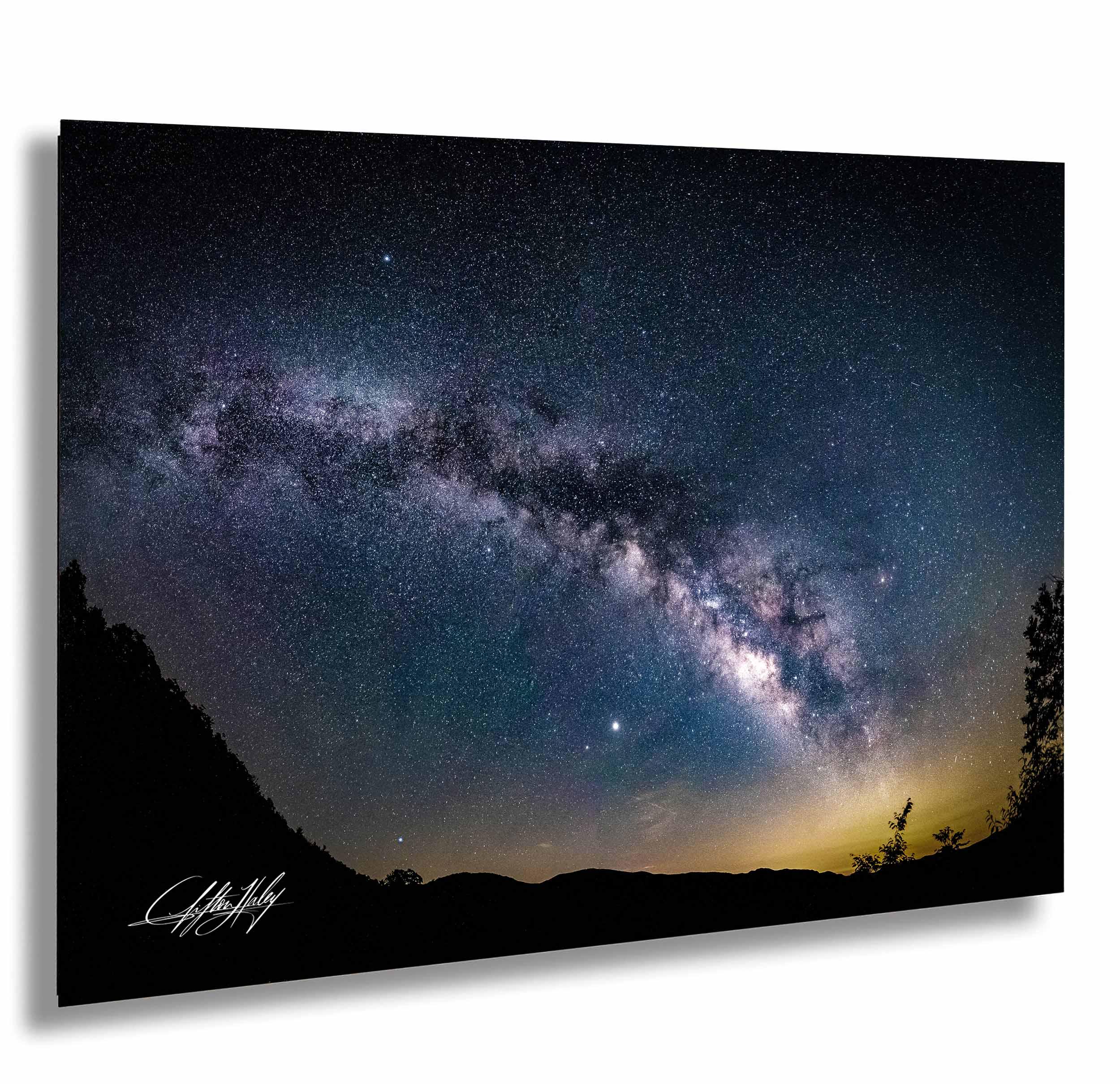 • Custom made-to-order fine art: each Milky Way night scene is carefully created just for you, ensuring a one-of-a-kind piece. • Artist's signature authenticates every print, adding a personal touch to your celestial canvas art. • Available as framed paper prints, acrylics, aluminum/metal prints with a 2" white mat border, or flush-mounted canvas prints without a border.